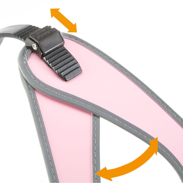 • Perfekte Passform, anpassbar an jeden Körperbau, mit dem von Ferplast patentierten Spezialgelenk zwischen den Gurten