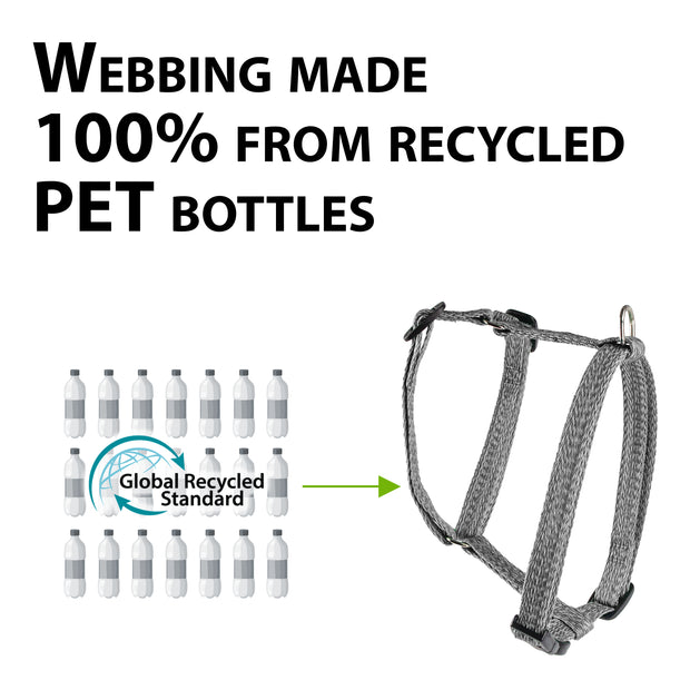 Greener-Geschirre sind die ideale Wahl für alle, die ein Accessoire für ihren Hund suchen, das Komfort, Langlebigkeit und Umweltfreundlichkeit vereint. Sie wurden für eine optimale Passform und maximale Sicherheit entwickelt und verfügen über Gurtbänder aus 100 % recyceltem Polyester aus PET-Flaschen, die nach dem Global Recycled Standard zertifiziert sind. Diese Zertifizierung bescheinigt nicht nur die nachhaltige Herkunft der Materialien, sondern auch einen umweltfreundlichen Produktionsprozess.