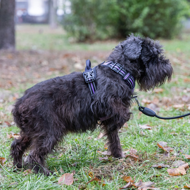 Das Hundegeschirr lässt sich dank praktischer Gurte leicht verstellen. Jede Modellgröße ist in verschiedenen Hals- und Brustumfangmaßen erhältlich und bietet so eine breite Anpassungsfähigkeit für Hunde verschiedener Größen. Die integrierten reflektierenden Elemente verbessern die Sichtbarkeit bei abendlichen Spaziergängen oder schlechten Lichtverhältnissen und erhöhen so die Sicherheit für Sie und Ihren vierbeinigen Begleiter.