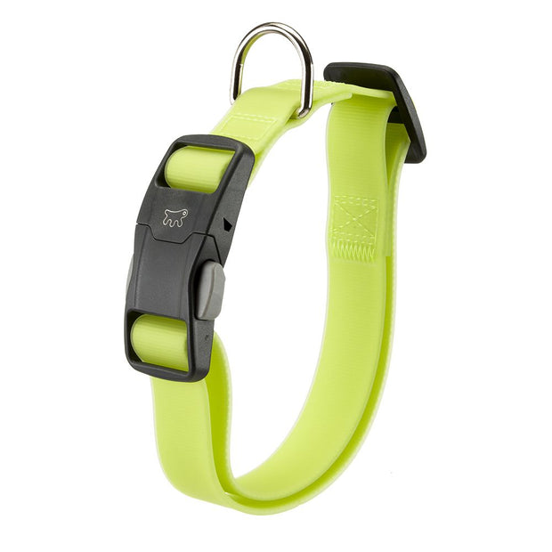 Die Evolution-Hundehalsbänder vereinen in einem einzigen Produkt Technologie, praktische Anwendung und Aufmerksamkeit für die Trends des Augenblicks dank der verfügbaren leuchtenden Farben. Erhältlich in verschiedenen Größen, sind sie ideal für Hunde jeder Größe. Sie bestehen aus einem elastischen Material, das widerstandsfähig und gleichzeitig weich ist, und haben ein internes Polyester-Gurtband, das mit Weich-PVC überzogen ist. Dieses besondere Material hat viele Vorteile: ungiftig und hypoallergen, waschbar mit Wasser und Seife, Anti-UV, resistent gegen niedrige und hohe Temperaturen. Außerdem ist es wasserdicht, was bedeutet, dass es auch bei Regen perfekt für Ihre Spaziergänge geeignet ist, da es nicht durchnässt wird und sich kein Schmutz im Gewebe festsetzt.