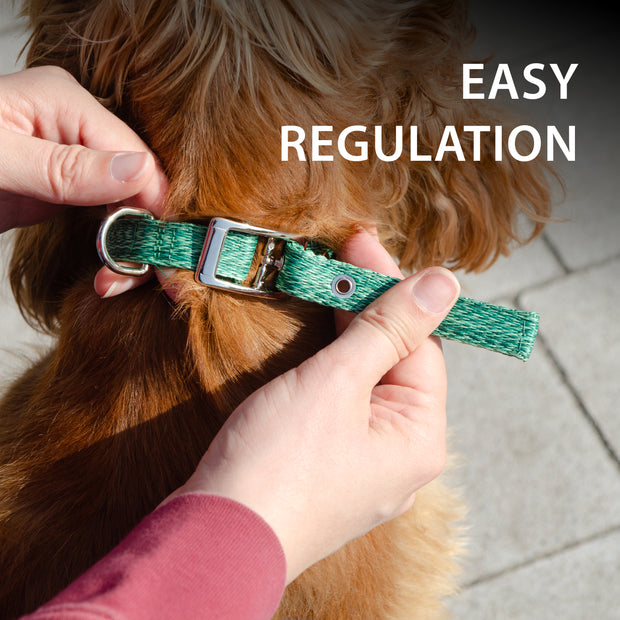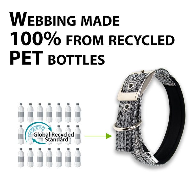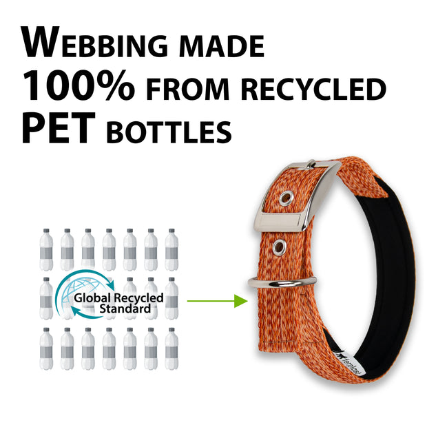 Hundehalsbänder aus zertifiziertem recyceltem Material. Weich gepolstert für maximalen Komfort.