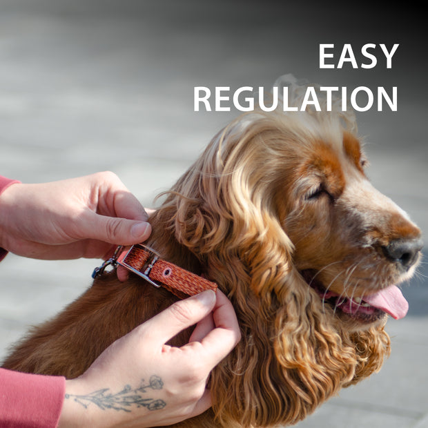 Die Lochverstellung sorgt für eine perfekte Passform und passt sich problemlos an Hunde aller Größen an. Die Halsbänder sind außerdem mit einer Metallschnalle ausgestattet, die einen Hauch von raffinierter Eleganz verleiht.