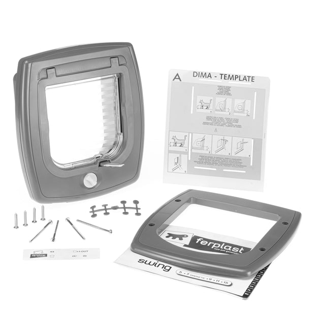 Dank der Ferplast Swing Produkte können Sie die Klappe exklusiv für Ihren vierbeinigen Freund an jeder Holz-, Metall- oder Glastüre sowie an Ziegelwänden anbringen. Für Katzen und Welpen empfehlen wir die Modelle Swing 1, 3 oder 5. Für mittelgroße bis große Hunde, sowie für große Katzen, sind die Modelle 11 und 15 empfehlenswert. Das Modell Swing 7 ist mit einem Magnetsystem ausgestattet und für Katzen perfekt geeignet. Die Klappen werden mit dem innovativen Windstopper-System, welches Schutz vor Zugluft (mit Ausnahme der Modelle Swing 1 und 3 ) bietet, geliefert. Ein weiterer wichtiger Bestandteil ist das 4 -Wege -Verschluss-System (nicht im Swing 1 Modell enthalten), mit dem Sie die Art der Öffnung auf Ihre Bedürfnisse anpassen können: Nur Einstieg, nur Ausstieg, Ein- und Ausstieg oder geschlossen. Der Durchgangsindikator wird Ihnen anzeigen (im Modell Swing 5), ob sich Ihr Haustier innerhalb oder außerhalb des Hauses befindet. Dieser besteht aus einem Flag, der auf der Unterseite der Katzenklappe angebracht ist und zeigt gleichzeitig die Richtung an, in die sich Ihr pelziger Freund zuletzt bewegt hat. Alle größeren Klappen sind mit einem Tunnel ausgestattet, so dass die Klappe an jede Struktur angebracht werden kann. Für das Modell Swing 5 und die Modelle Swing 1 und 3 für kleinere Haustiere, ist eine neue modulare Erweiterung des Tunnels als Zubehör erhältlich. Dieser geht 5 cm in die Tiefe (Schrauben sind nicht enthalten). Wir empfehlen Ihnen vor dem Einbau in Glaskonstruktionen einen Glaser zu befragen, da es nicht möglich ist, Löcher in Sicherheitsglas oder Doppel-Verglasung zu bohren.