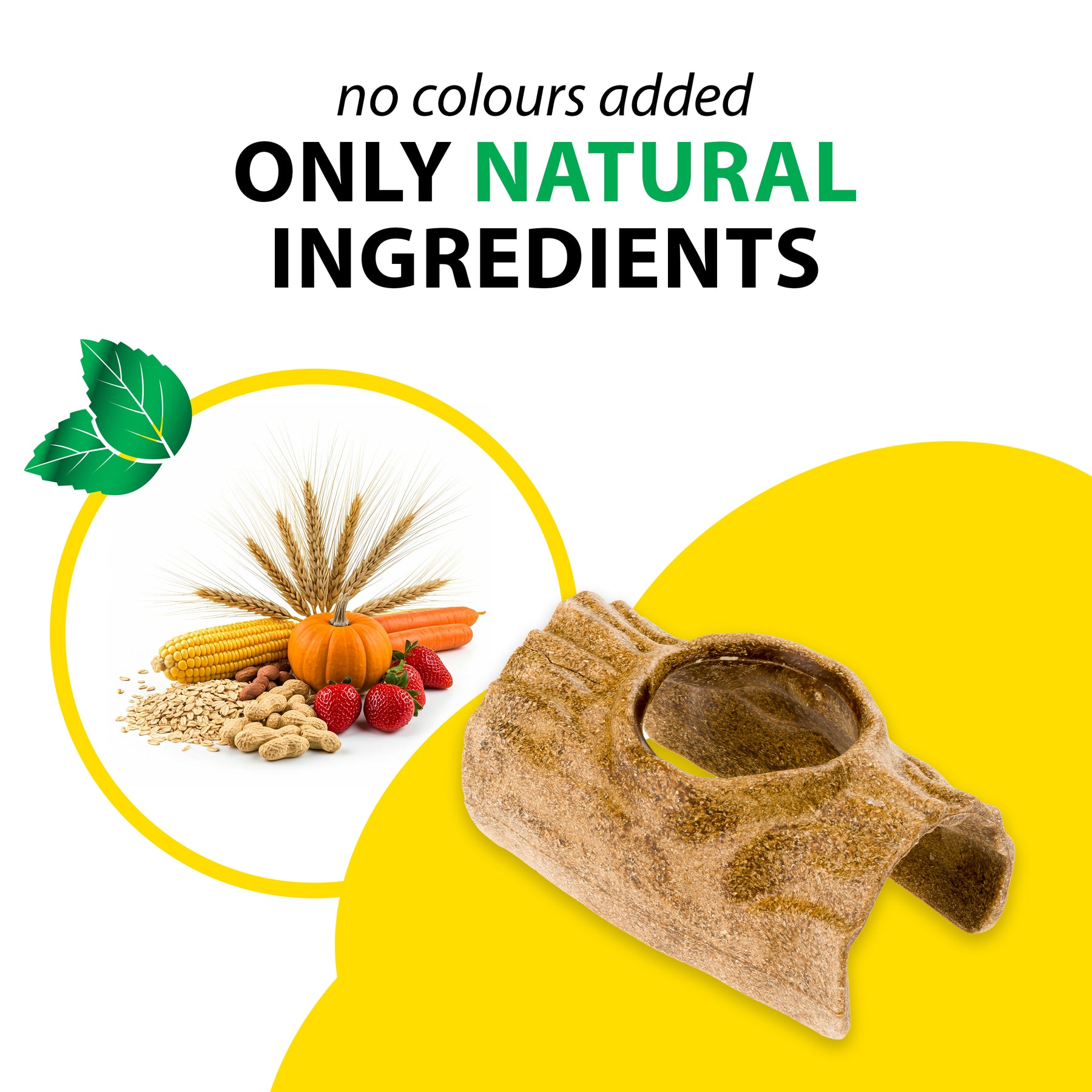 Dank seiner dreifachen Funktion — Ergänzungsfuttermittel, Kau-Leckerli und Unterstützung der Zahnpflege — ist Veggie Bites Stamm eine praktische Lösung zur Anreicherung der täglichen Umgebung von Kleintieren. Die Rezeptur auf Basis von Weizenstängeln, Haferkleie, Erbsenfaser, Maismehl und Maisstängeln, Kürbis, pflanzlichem Glycerin und Luzerne sorgt für Natürlichkeit und Abwechslung bei jedem Bissen.