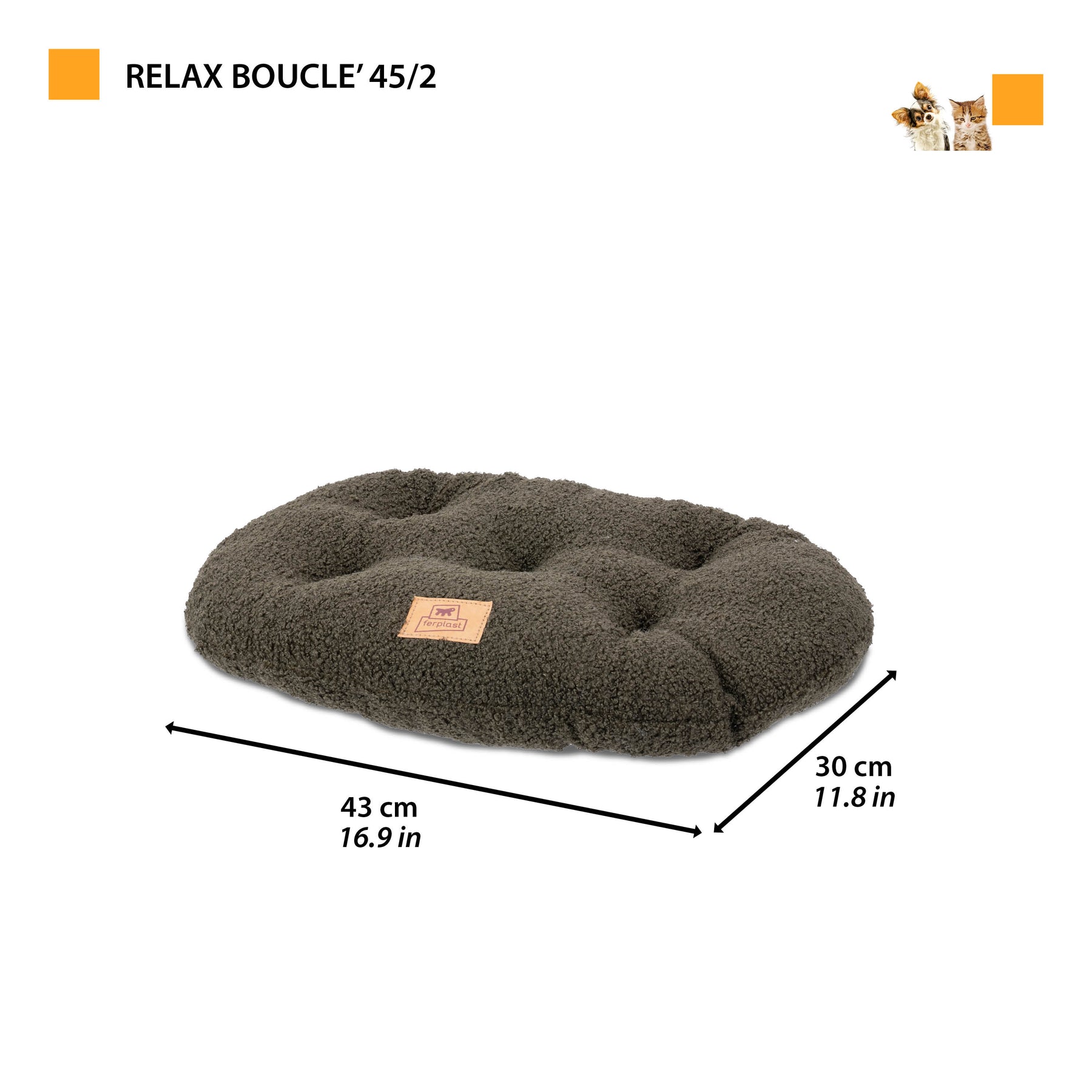 Relax Bouclé Hundekissen und Katzenkissen sind in verschiedenen eleganten Farben erhältlich, die sich leicht an jeden Wohnstil anpassen. Praktisch und funktional, sind sie bei 30° in der Waschmaschine waschbar und garantieren Hygiene und täglichen Komfort.