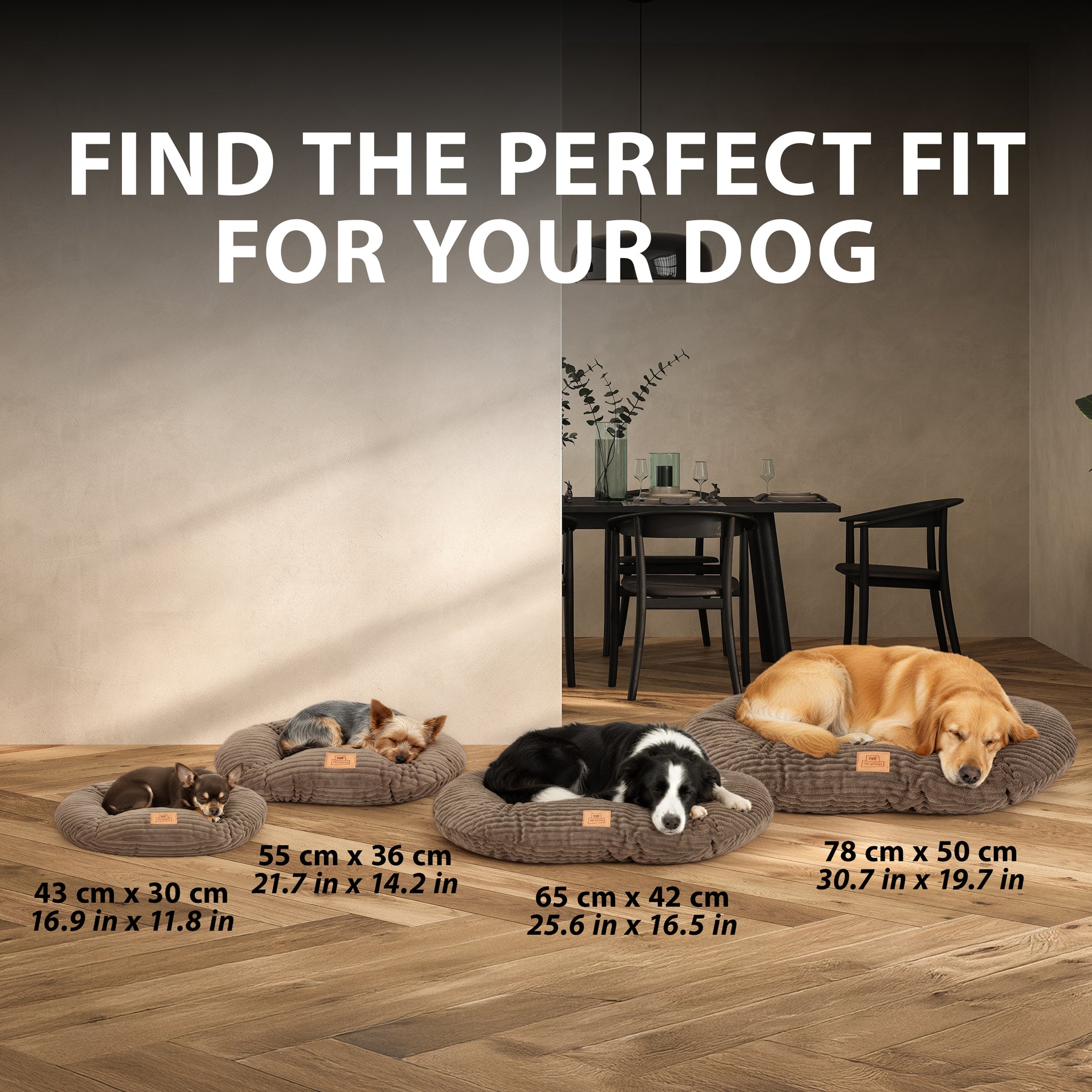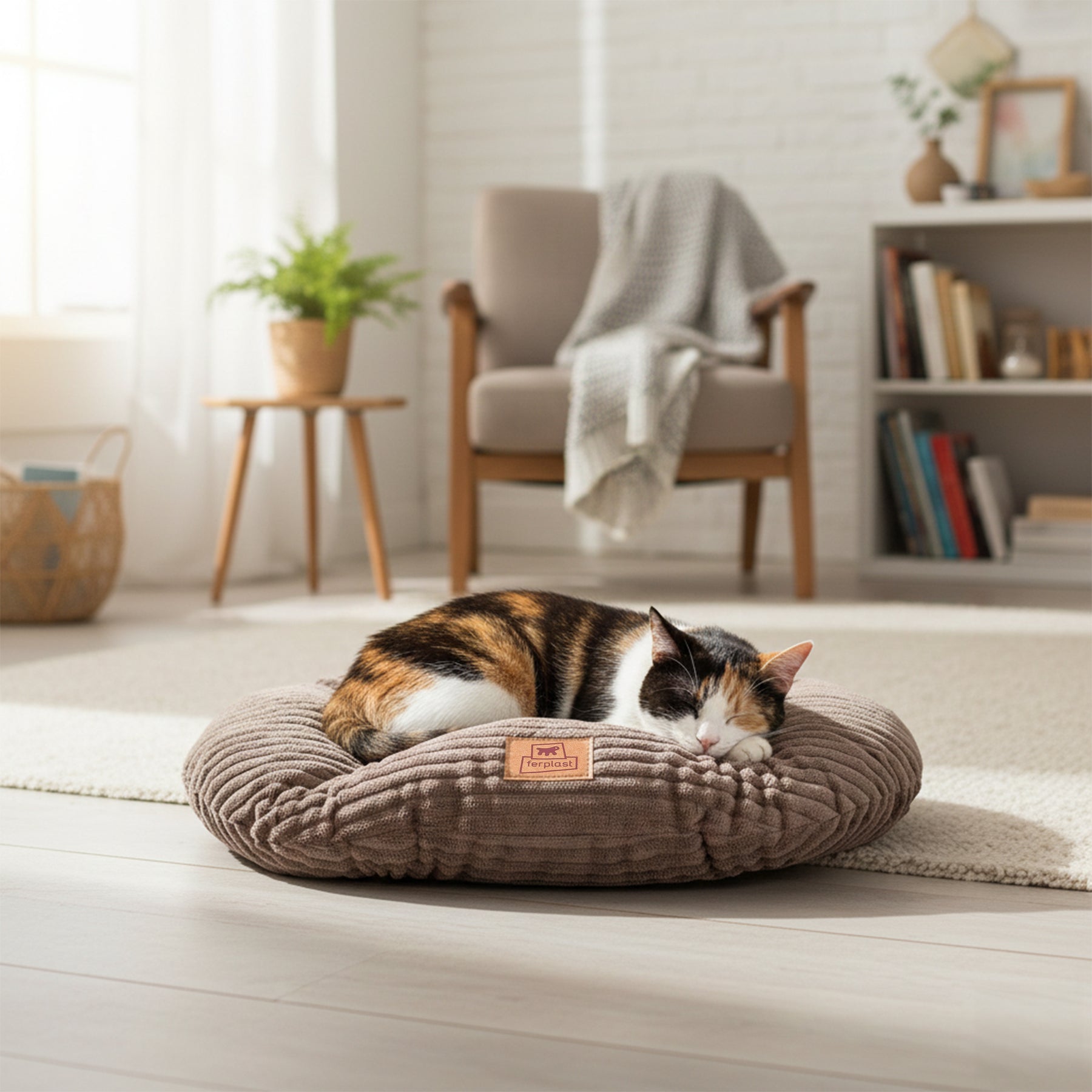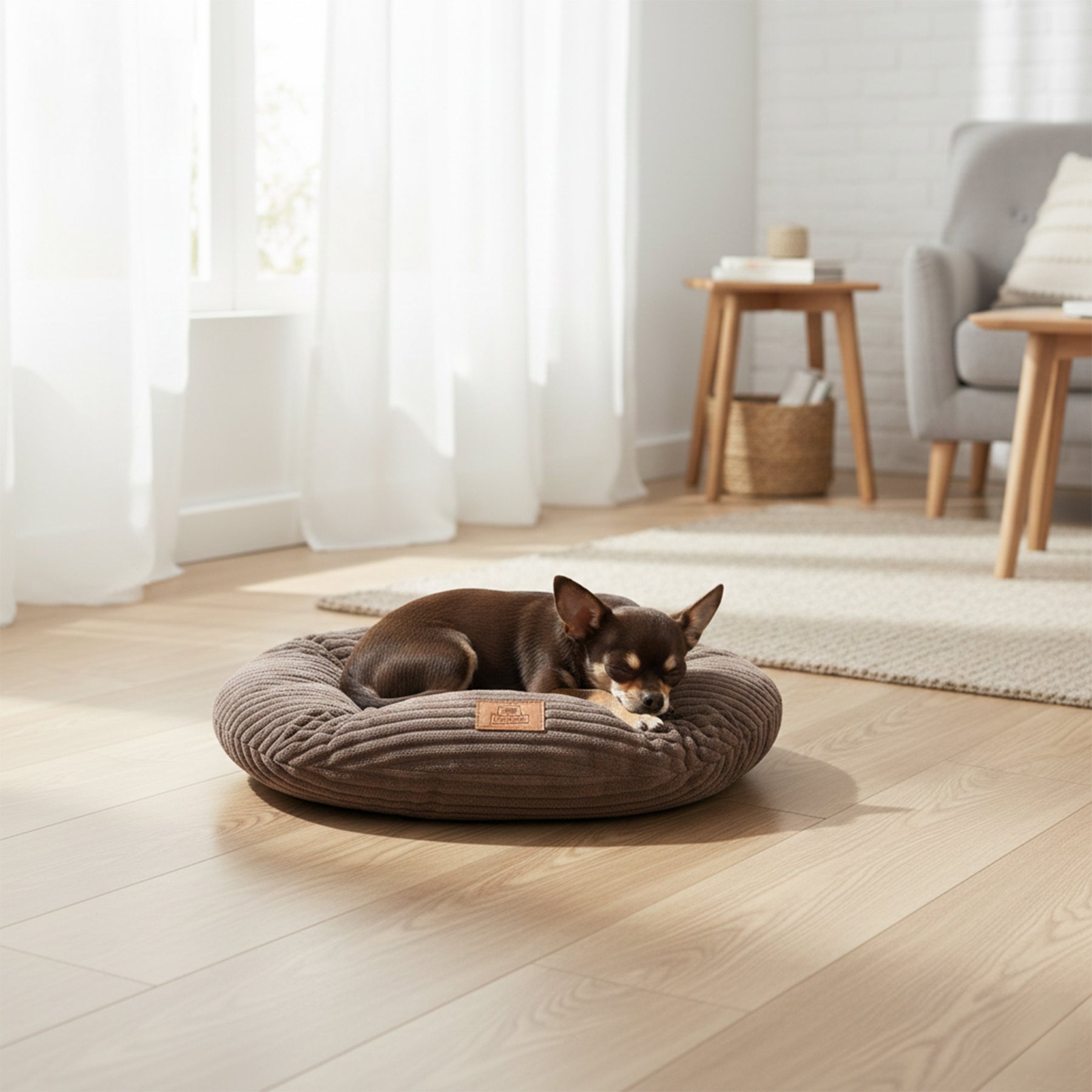 Der Bezug aus Corduroy-Rippenvelours verbindet Eleganz mit Alltagstauglichkeit und fühlt sich angenehm weich an. Die weiche Polsterung macht dieses Produkt ideal als bequemes Hundebett oder Katzenbett für den Innenbereich, geeignet für kleine, mittelgroße und große Tiere.