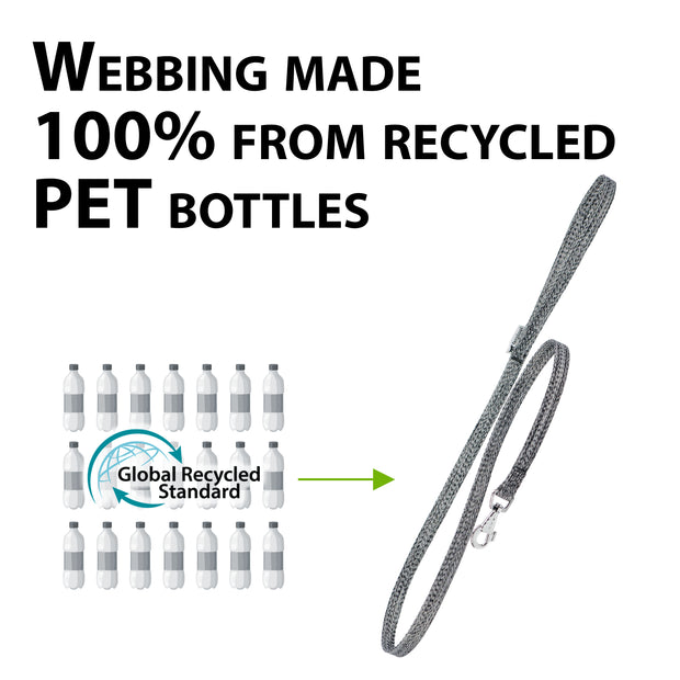 Die Leinen bestehen zu 100 % aus recyceltem Polyester aus PET-Flaschen und sind nach dem Global Recycled Standard zertifiziert - eine Garantie für sichere, umweltfreundliche und hochwertige Materialien. Jede Leine reduziert nicht nur den Plastikmüll, sondern verwandelt ihn auch in ein robustes und langlebiges Hundezubehör, das sich perfekt für den täglichen Gebrauch eignet.