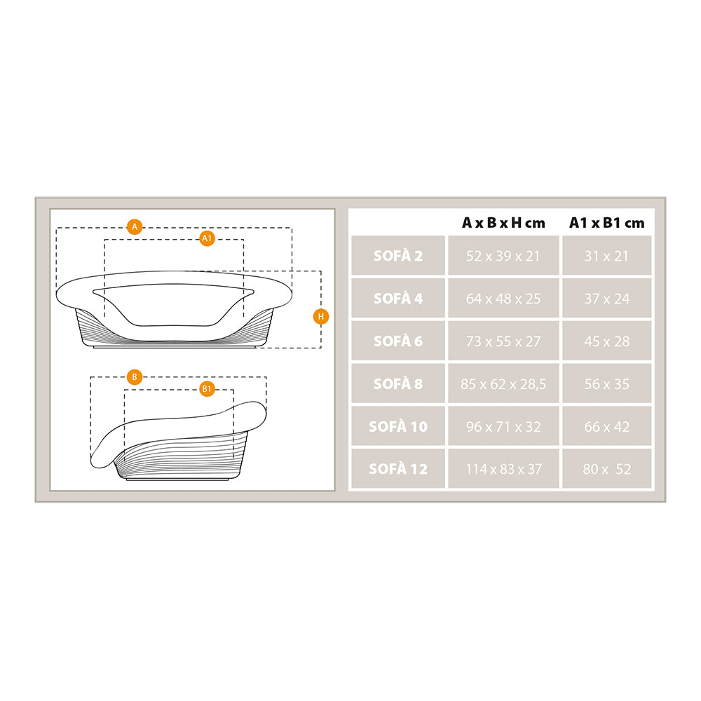 Dieses komfortable Hunde- und Katzenbett ist komplett mit einem weichen und warmen Samtbezug ausgestattet, der eine perfekte Kombination aus Eleganz und Praktikabilität darstellt. Der Bezug ist robust und verschleißfest, und gleichzeitig pflegeleicht, denn er kann bei Bedarf aus dem Korb entfernt und in der Waschmaschine gewaschen werden (max. 30 °). Die Korbwanne aus thermoplastischem Kunststoff verfügt über hohe Seitenwände und rutschfeste Füße für mehr Stabilität. Die Sofà Prestige Bettchen werden in verschiedenen Größen für kleine und mittlere Katzen und Hunde angeboten. Der Polsterbezug Sofà Prestige Cushion kann auch separat erworben werden.