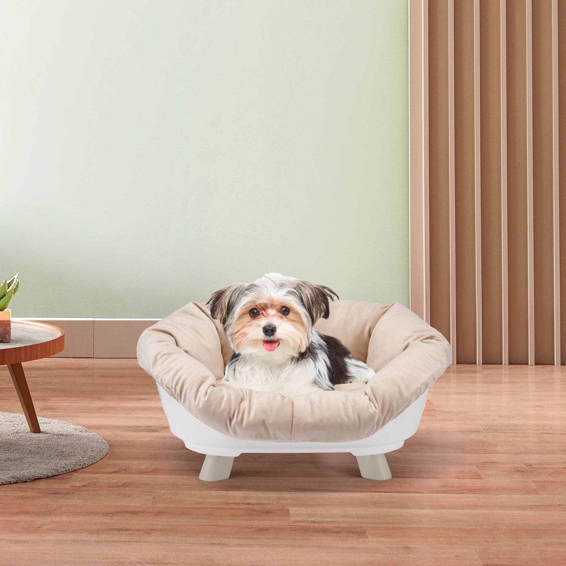 Erhöhtes Hunde- und Katzenbett mit abnehmbaren, Anti-Rutsch-Füßen. Inklusive Velours-Polsterung.