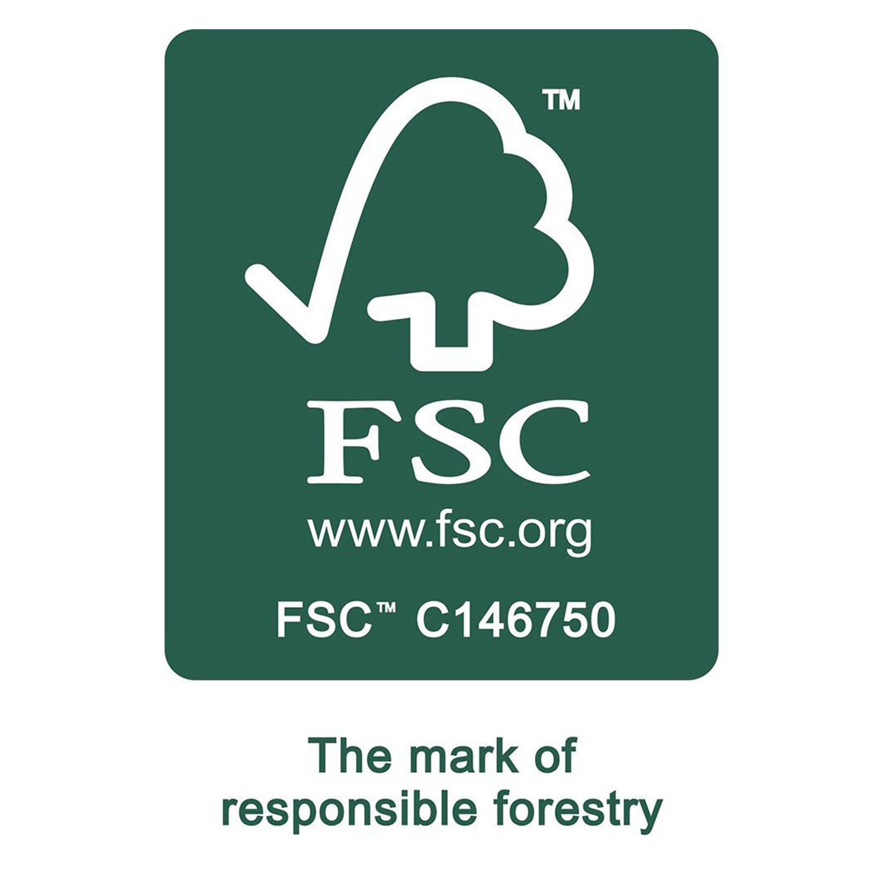 - Hergestellt aus FSC™ zertifiziertes Holz aus Wäldern, die korrekt und verantwortungsbewusst bewirtschaftet werden und anderen kontrollierten Quellen