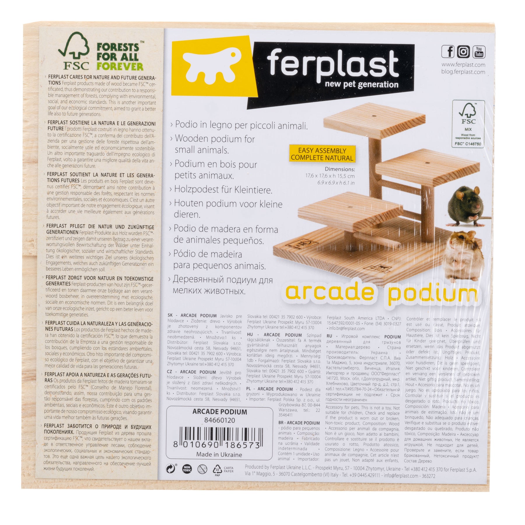 Arcade Podium, geeignet für Hamster und Mäuse, ist ein origineller Holzsockel mit 3 Ebenen, der mit Plattformen ausgestattet ist, die nützlich sind, um Bewegung zu fördern. Einfach zu montieren, wird als Bausatz geliefert.