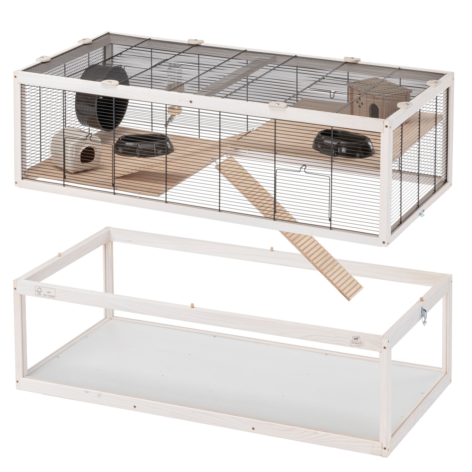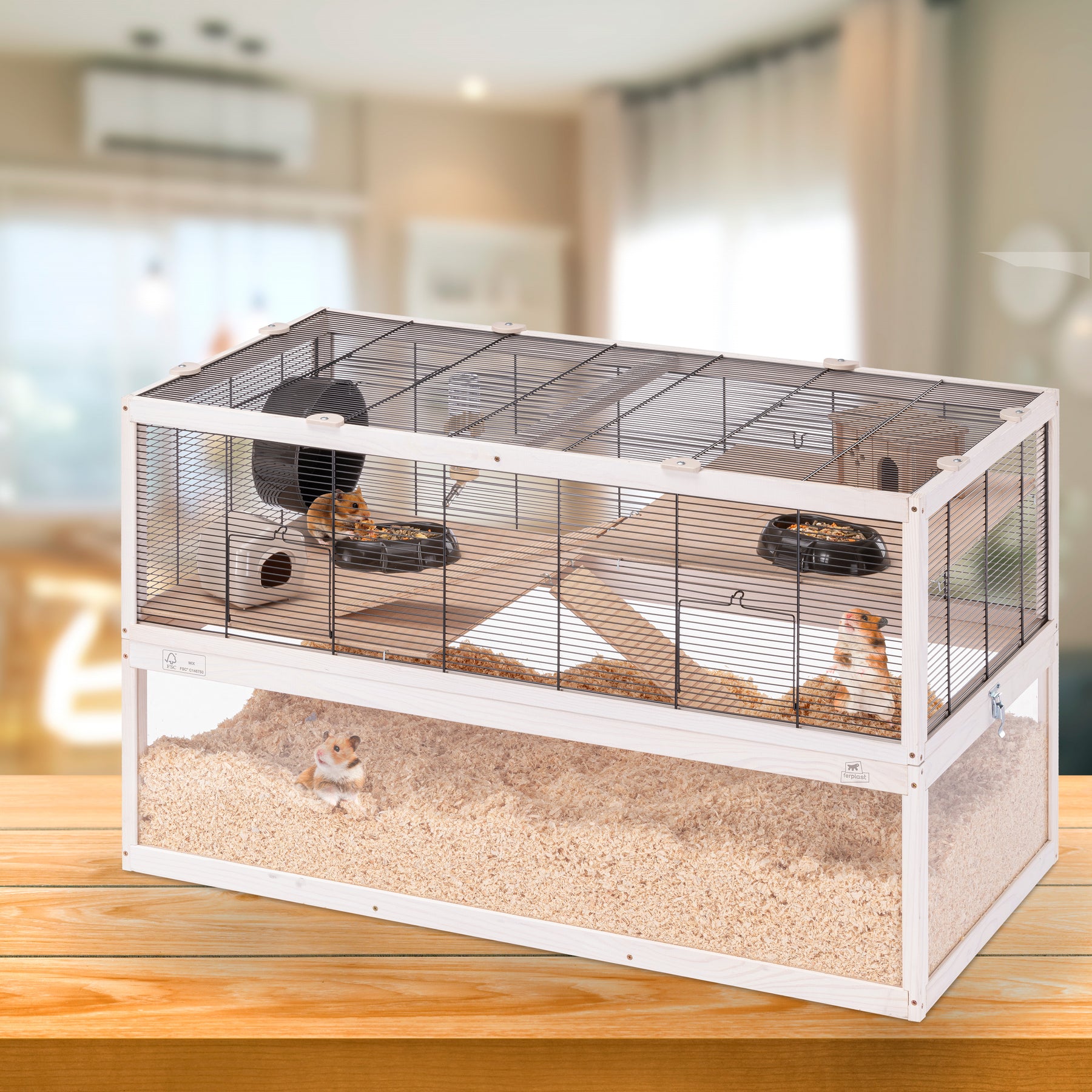 Der durchsichtige Kunststoffboden jedes Käfigs ermöglicht eine klare Sicht auf Ihr Haustier, sodass Sie die Spiel- und Erkundungsaktivitäten Ihres Nagetiers leicht beobachten können.