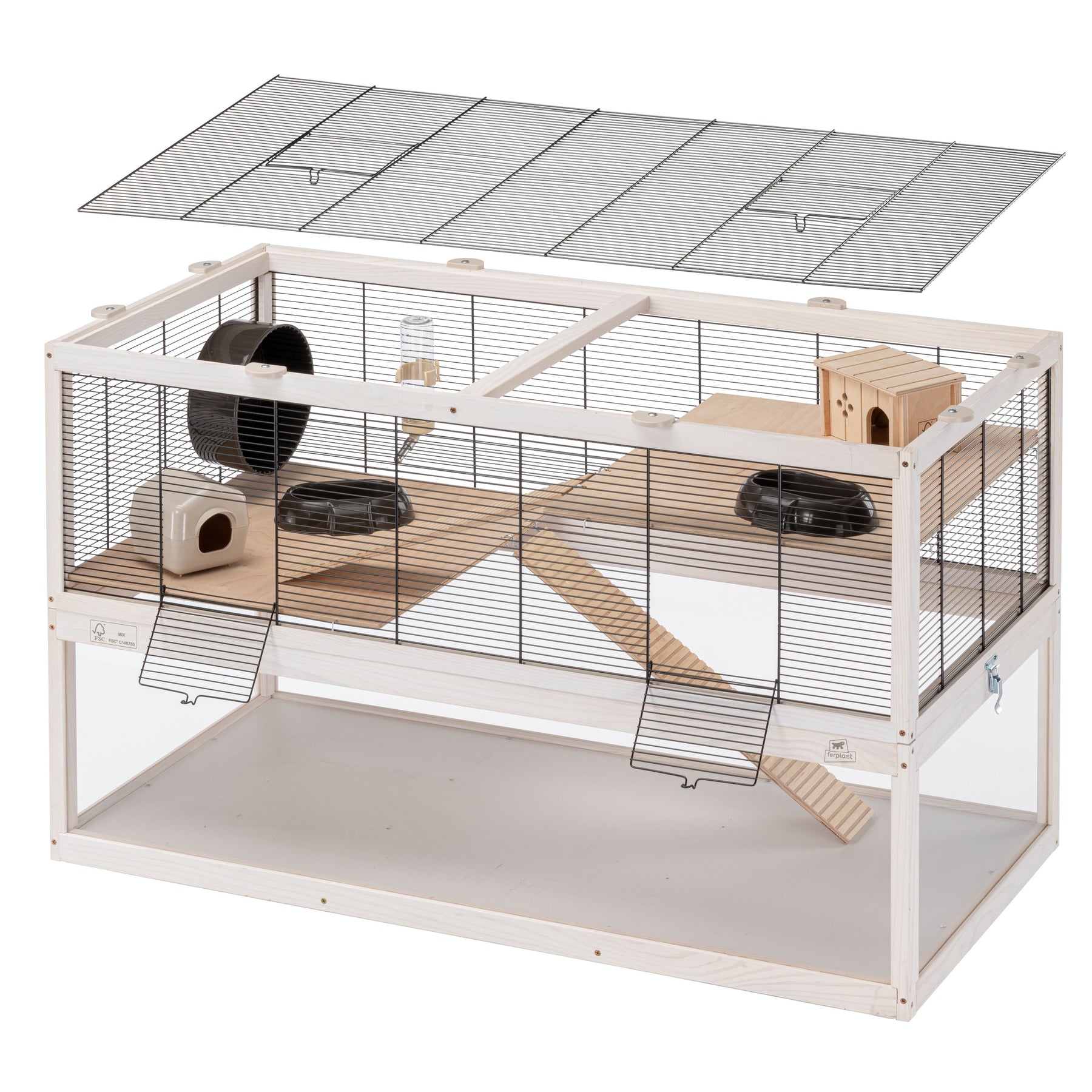 - Zu öffnendes Dach für leichten Zugang und Interaktion mit dem Nagetier