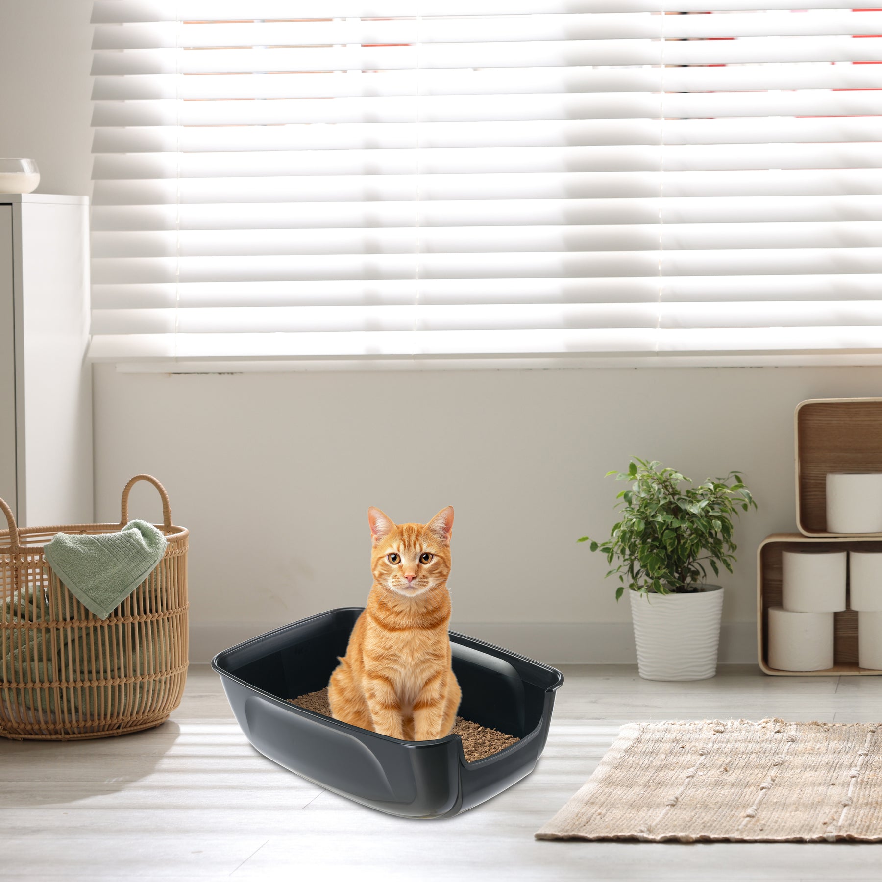 Der abgesenkte Einstieg erleichtert den Zugang auch für ältere Katzen oder solche mit eingeschränkter Mobilität. Das Design mit abgerundeten Ecken macht die Toilette besonders einfach zu reinigen und zu pflegen.
