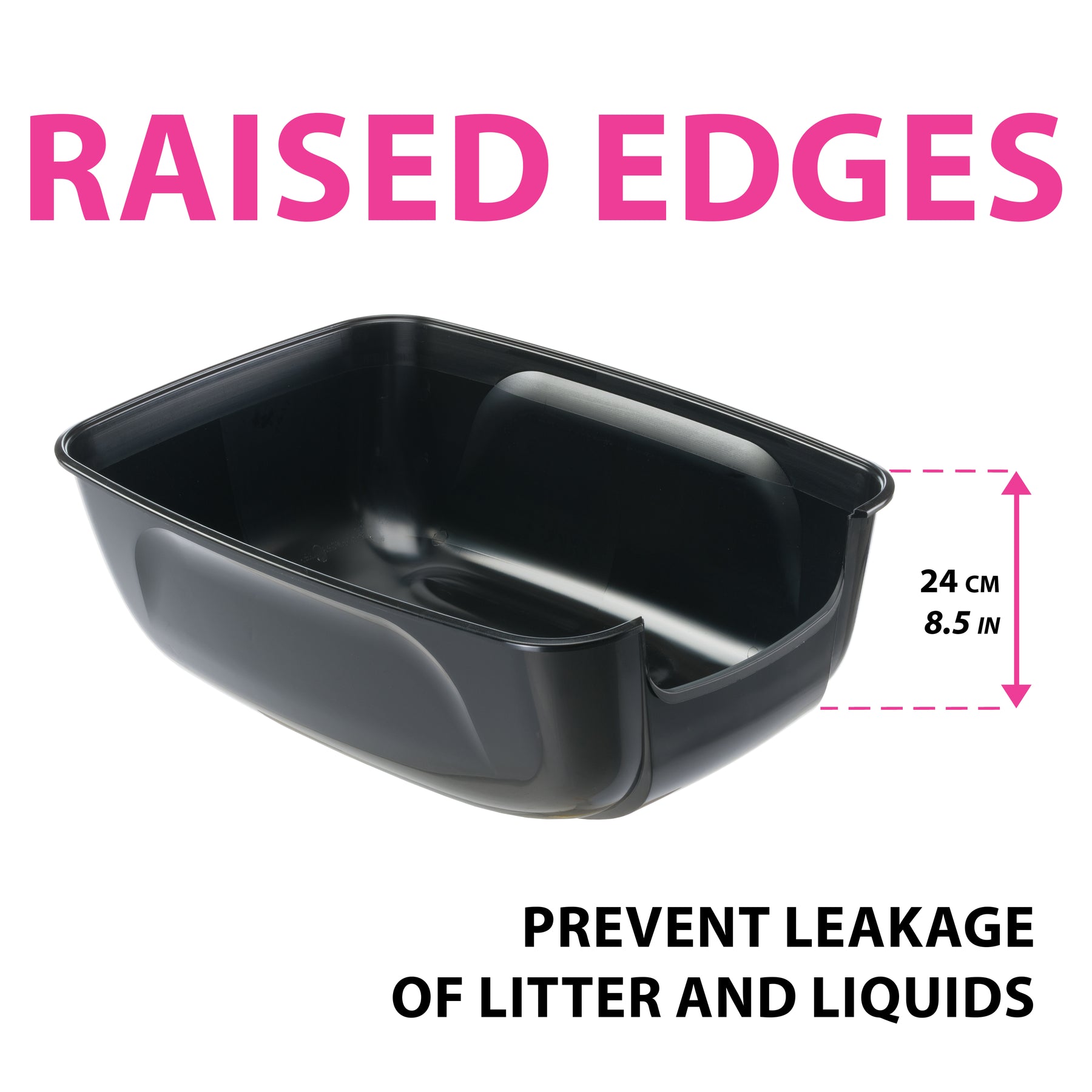 - Hoher Rand (24 cm): verhindert das Austreten von Streu und Schmutz