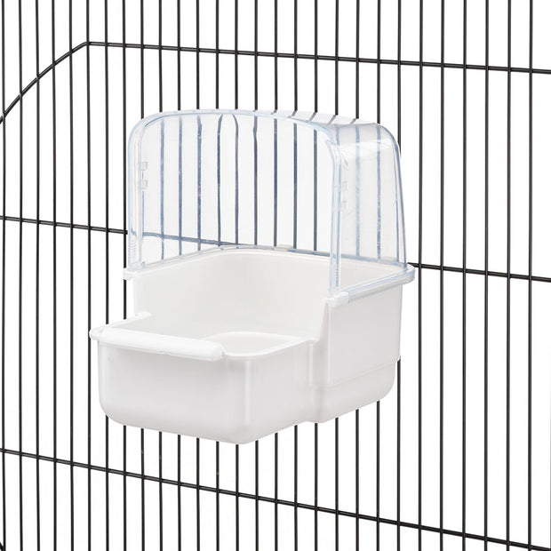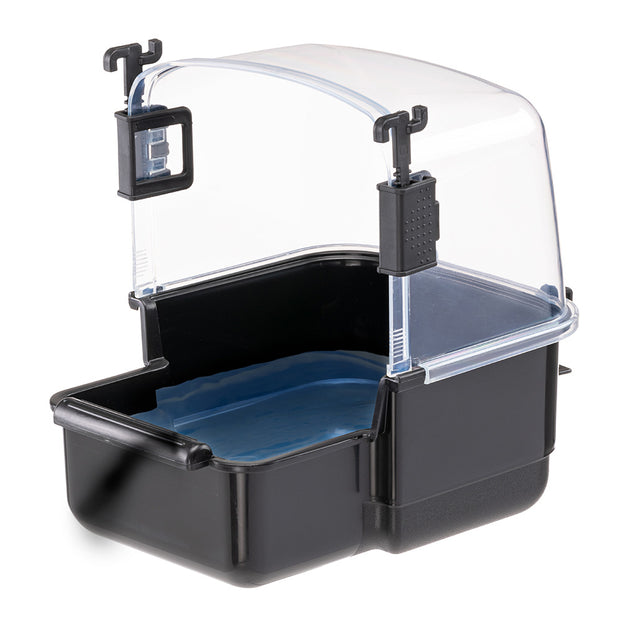 Das Rio 3 Badehäuschen für Sittiche und kleine Papageien ermöglicht es Ihren Freunden, ihre Federn aufzufrischen und ein optimales Maß an Feuchtigkeit aufrechtzuerhalten, insbesondere bei wärmerem Wetter. Das Zubehör besteht aus ungiftigem Kunststoff, sicher für das Tier, mit rutschfestem Boden und Sitzstange für Vögel. Es hat auch einen transparenten Schutz, der nützlich ist, um das Austreten von Spritzern zu verhindern. Dank des Höhenverstellsystems passt sich das Badehäuschen an verschiedene Arten von Wellensittichkäfigen an und kann je nach Bedarf innerhalb oder außerhalb des Käfigs montiert werden.