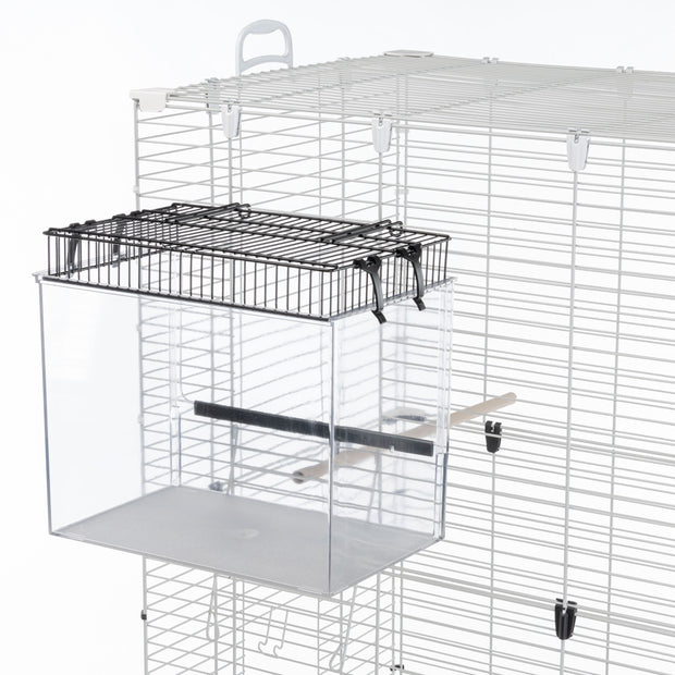 Das Zubehör wird mit robusten, einfach zu verwendenden Clips geliefert, die eine sichere und stabile Befestigung an den meisten Vogelkäfigen ermöglichen. Diese Vielseitigkeit macht die Vogelbadehouse äußerst praktisch, da sie schnell und unkompliziert installiert werden kann. Außerdem lässt sich die Vogeltränke leicht entfernen und reinigen, so dass Sie eine hygienische Umgebung für Ihre geliebten Vögel schaffen können.