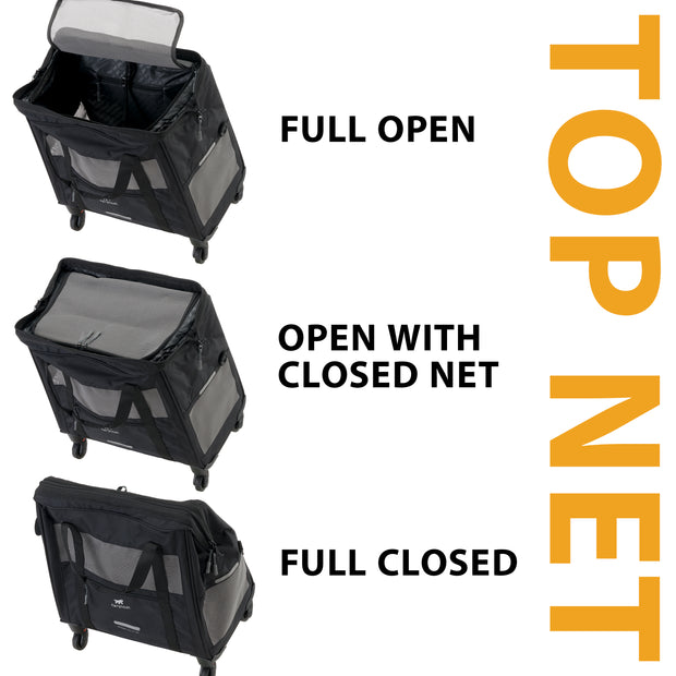 • Klappbares Sicherheitsnetz auf der Oberseite, das den Zugang zum Tier erleichtert und eine gut belüftete Umgebung gewährleistet