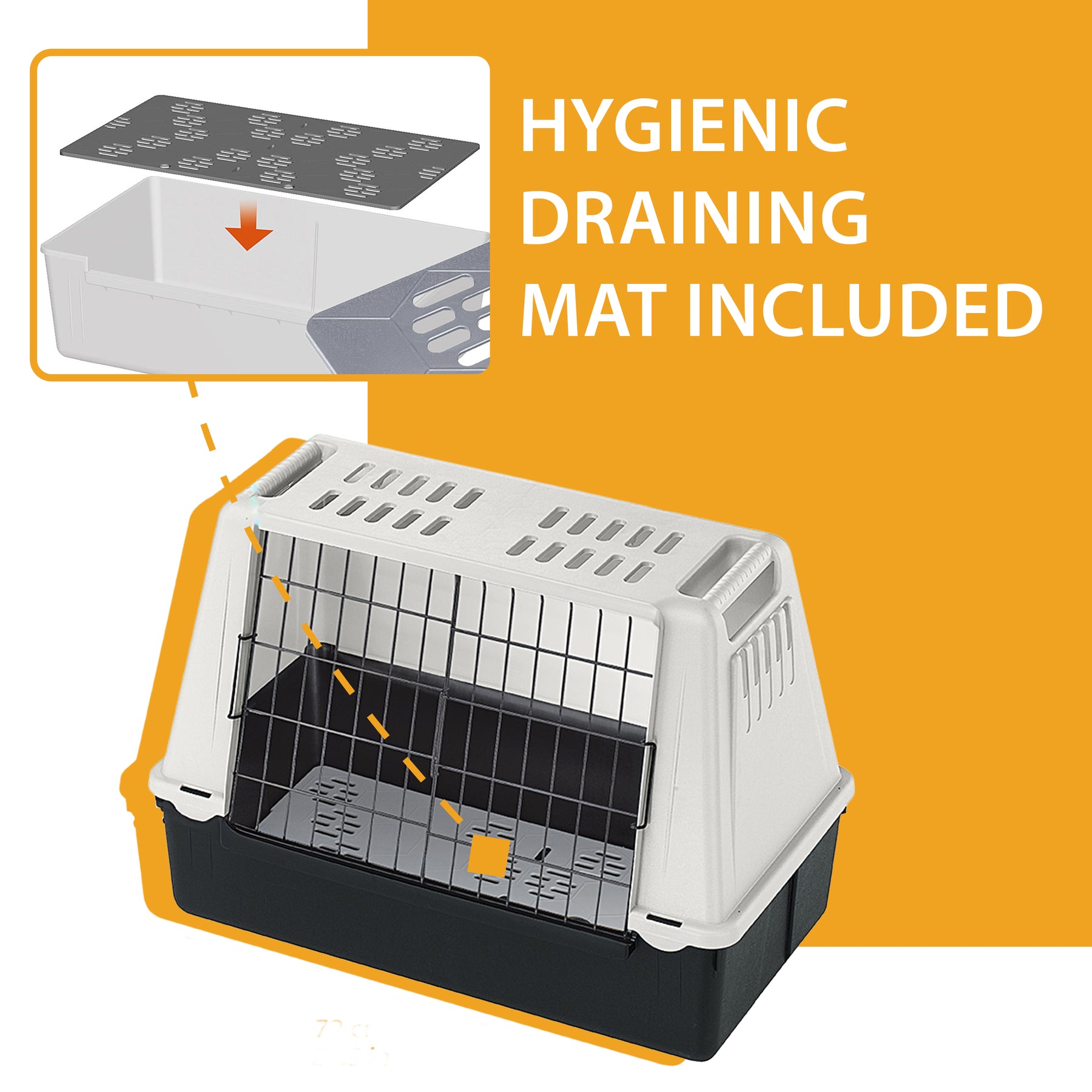 Alle Modelle sind mit einem Sicherheitsverschluss und einer Schiebetür versehen, die sich in beide Richtungen öffnen lässt. Die großzügigen Lüftungsschlitze sorgen für eine ausreichende Luftzirkulation und die passende Drainagematte hält den Innenraum der Box trocken. Die seitlichen Eingriffe am Oberteil erleichtern ein Verschieben der Box oder auch die Entnahme der Box aus dem Auto. Der leicht zu montierende Atlas Car-Hundetransporter ist wirklich praktisch und schnell zu reinigen: Die Hygienematte ist leicht abnehmbar, sodass Sie sie in wenigen Sekunden austauschen oder reinigen können.