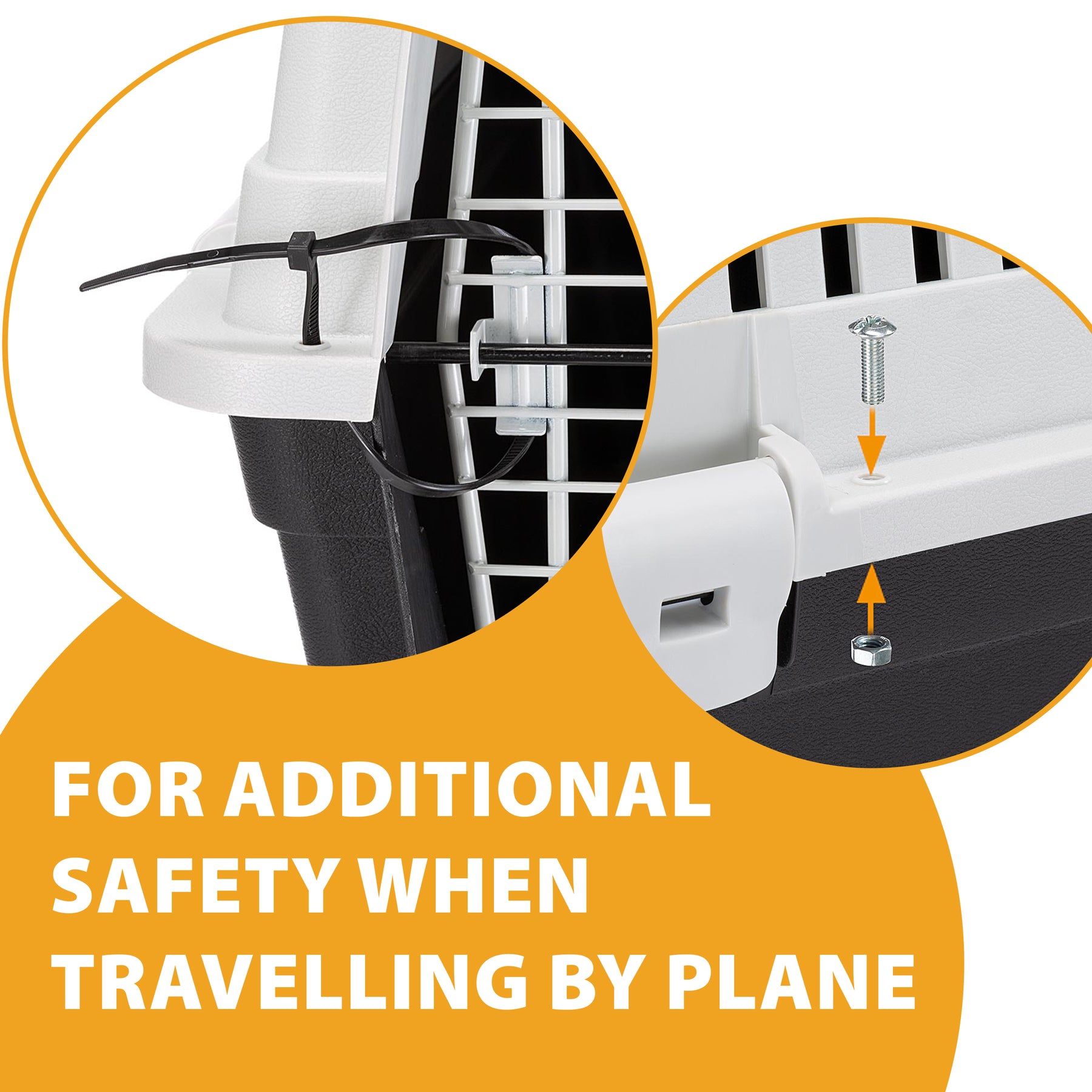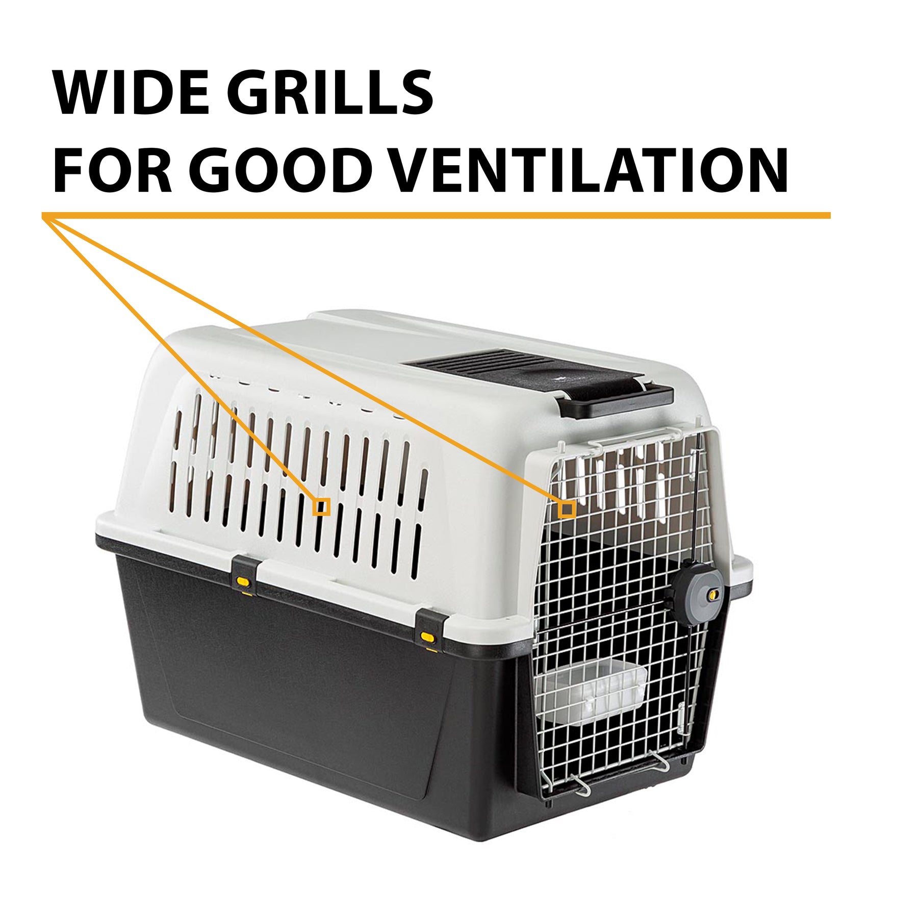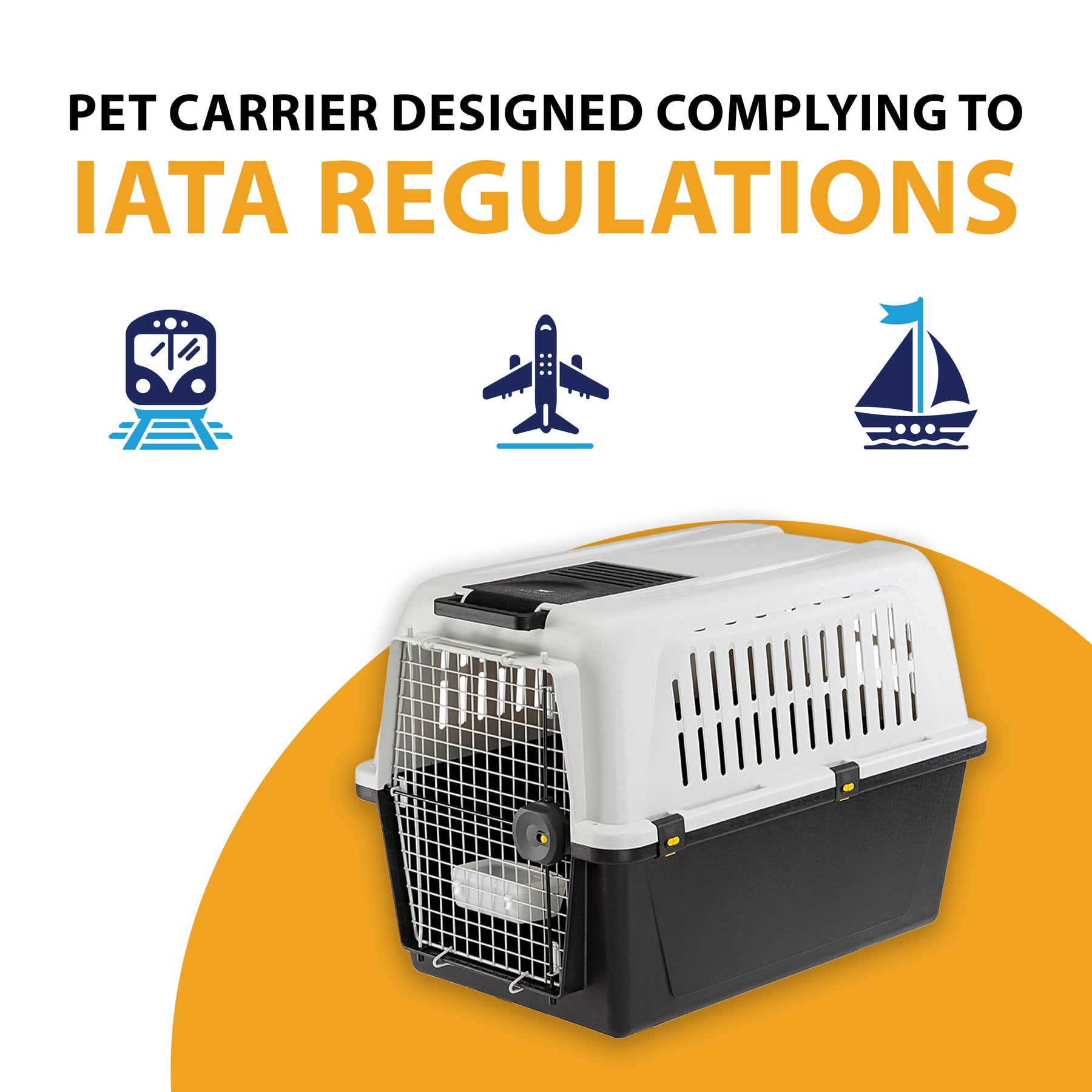 Dank der Gittertür mit einer Maschenweite von 25 x 25 mm entsprechen die Atlas-Hundetransportboxen den geltenden IATA-Vorschriften für den Transport von Haustieren, wenn sie mit dem entsprechenden Netz-Kit verwendet werden, das an den seitlichen Belüftungsschlitzen angebracht wird und separat als Zubehör erhältlich ist.