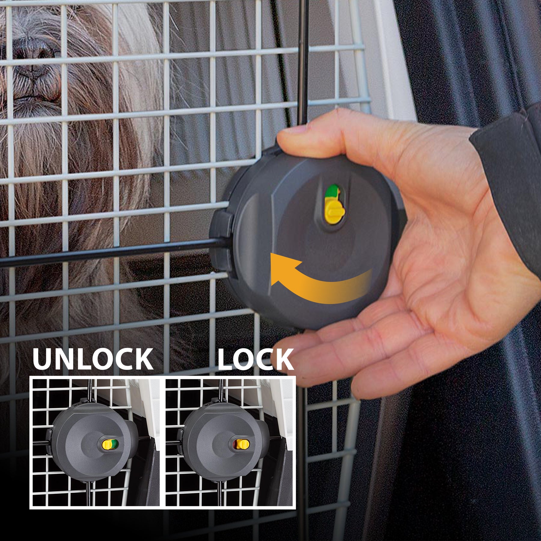 Der Sicherheitsverschluss wurde kürzlich überarbeitet, wodurch er noch einfacher in der Anwendung sowie effektiv und sicher ist: Durch Drehen des Drehknopfes werden vier Befestigungspunkte aktiviert, die die Tür an der Hauptstruktur verankern und ein unbeabsichtigtes Öffnen während der Reise verhindern.