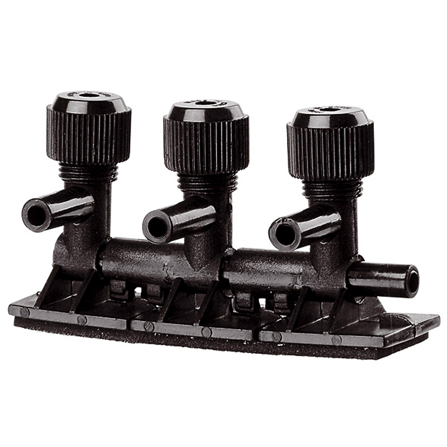 BLU 9033 ist ein 3-Wege-Kunststoff-Ventil, das ideale Zubehör für alle Arten von Aquarien. Dieses Ventil ermöglicht es Ihnen, unter Verwendung von PVC- oder Silikonschläuchen, mehrere Accessoires mit Ihrem Aquarium zu verbinden.