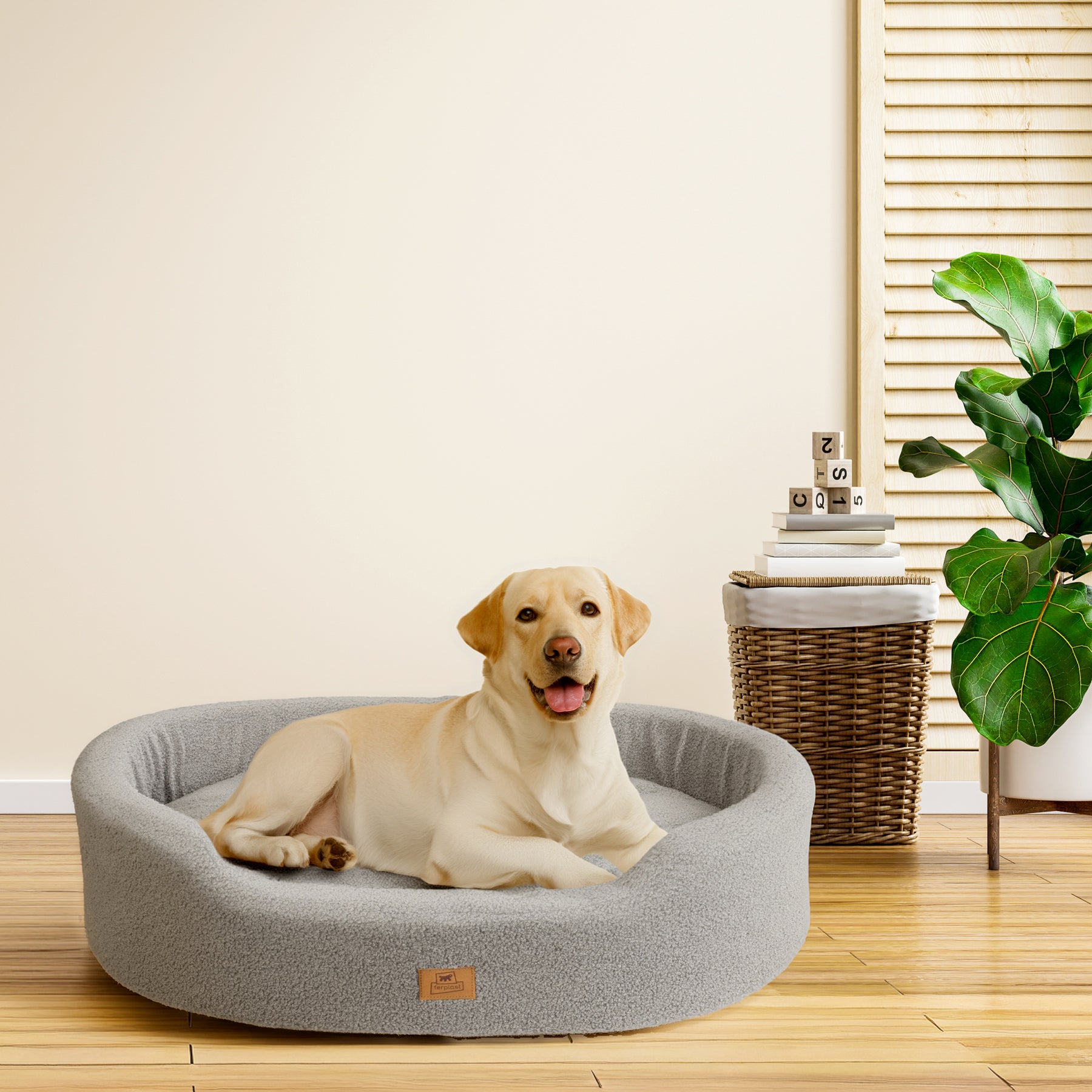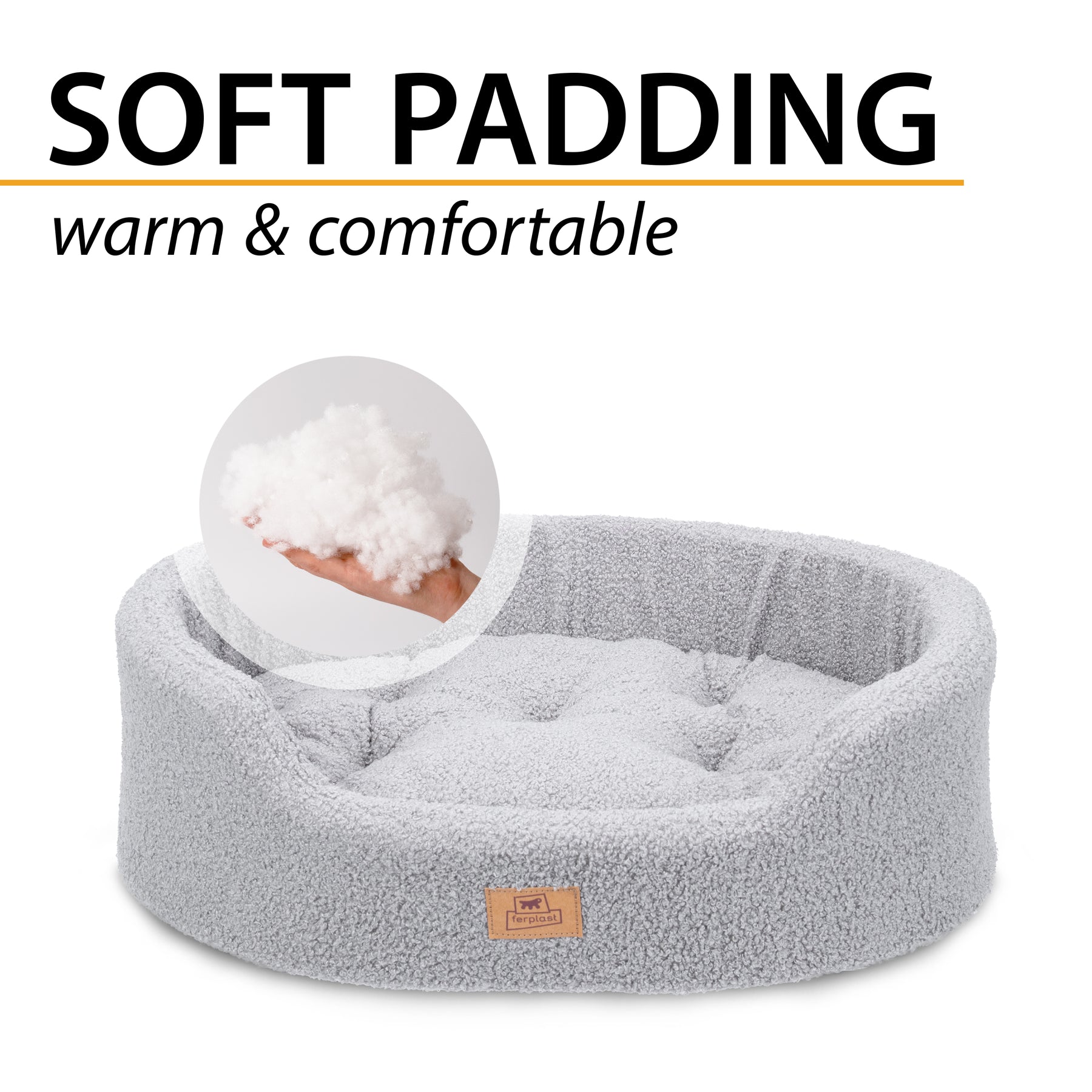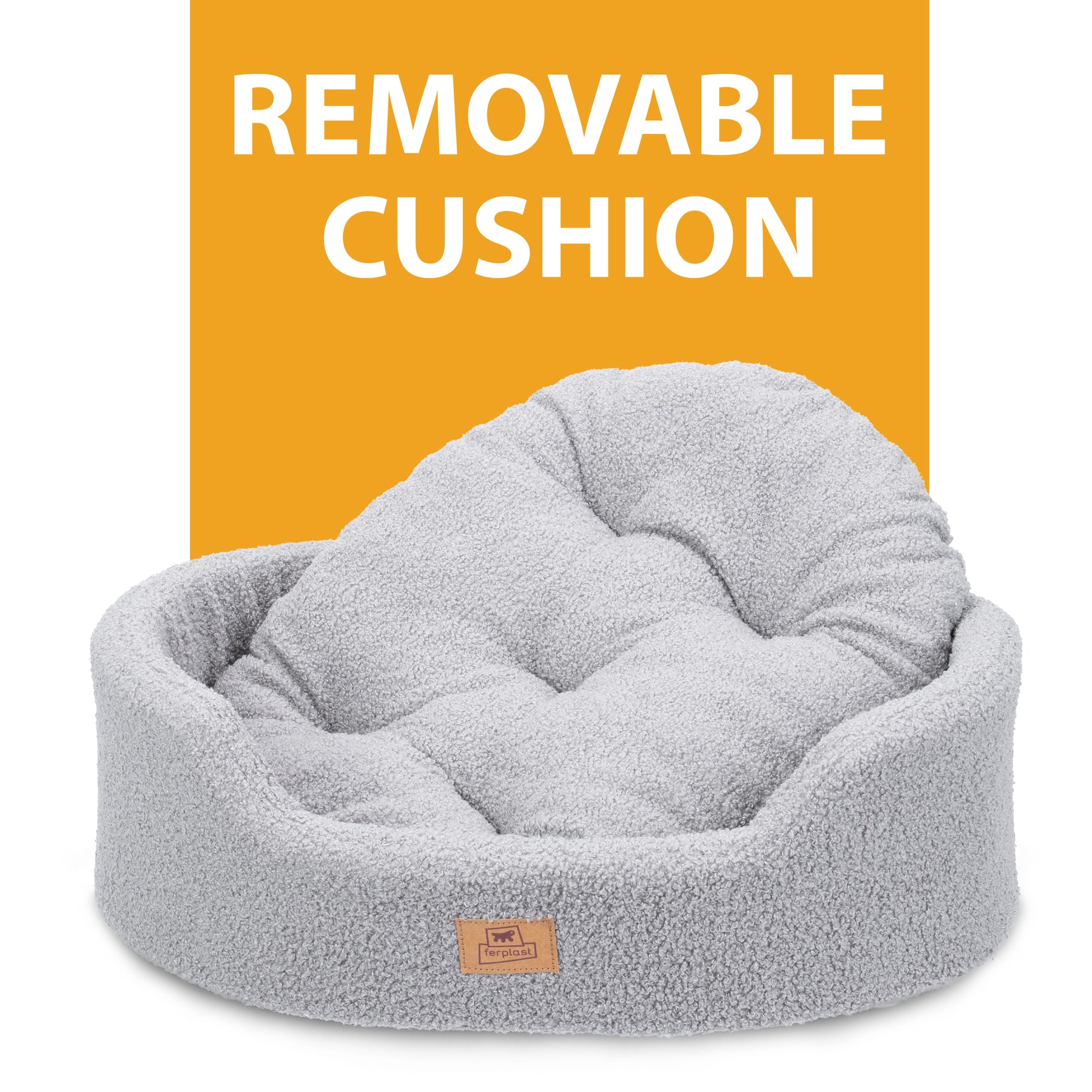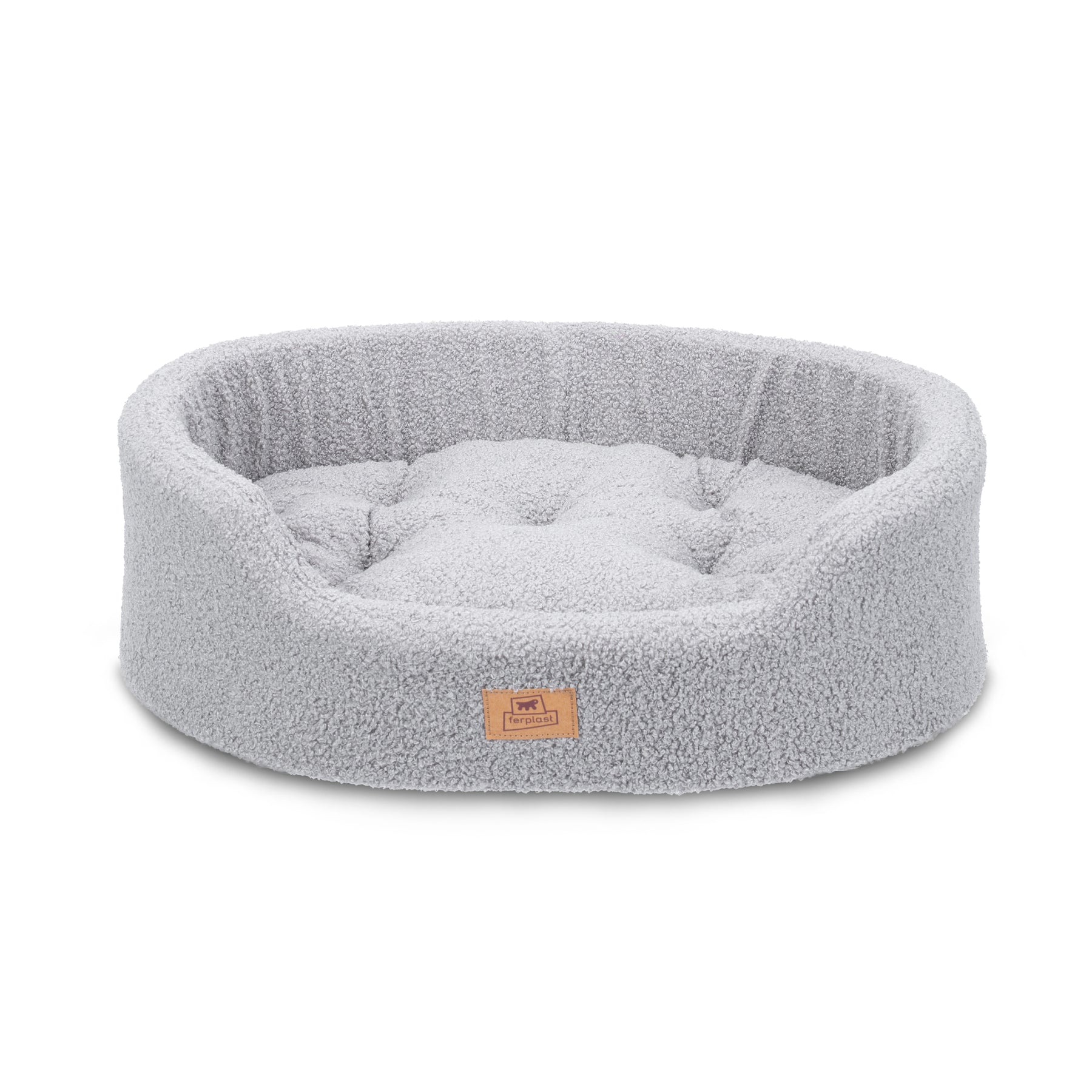 Komplett mit weichem Kunst-Bouclé-Stoff bezogen, warm und kuschelig, passt sich das Dandy Bouclé Haustierbett elegant an jedes Wohnambiente an. Es ist perfekt für die Winterzeit und für Tiere, die besonders kälteempfindlich sind. Zudem ist es bei 30° von Hand waschbar, was Hygiene und Alltagstauglichkeit gewährleistet.