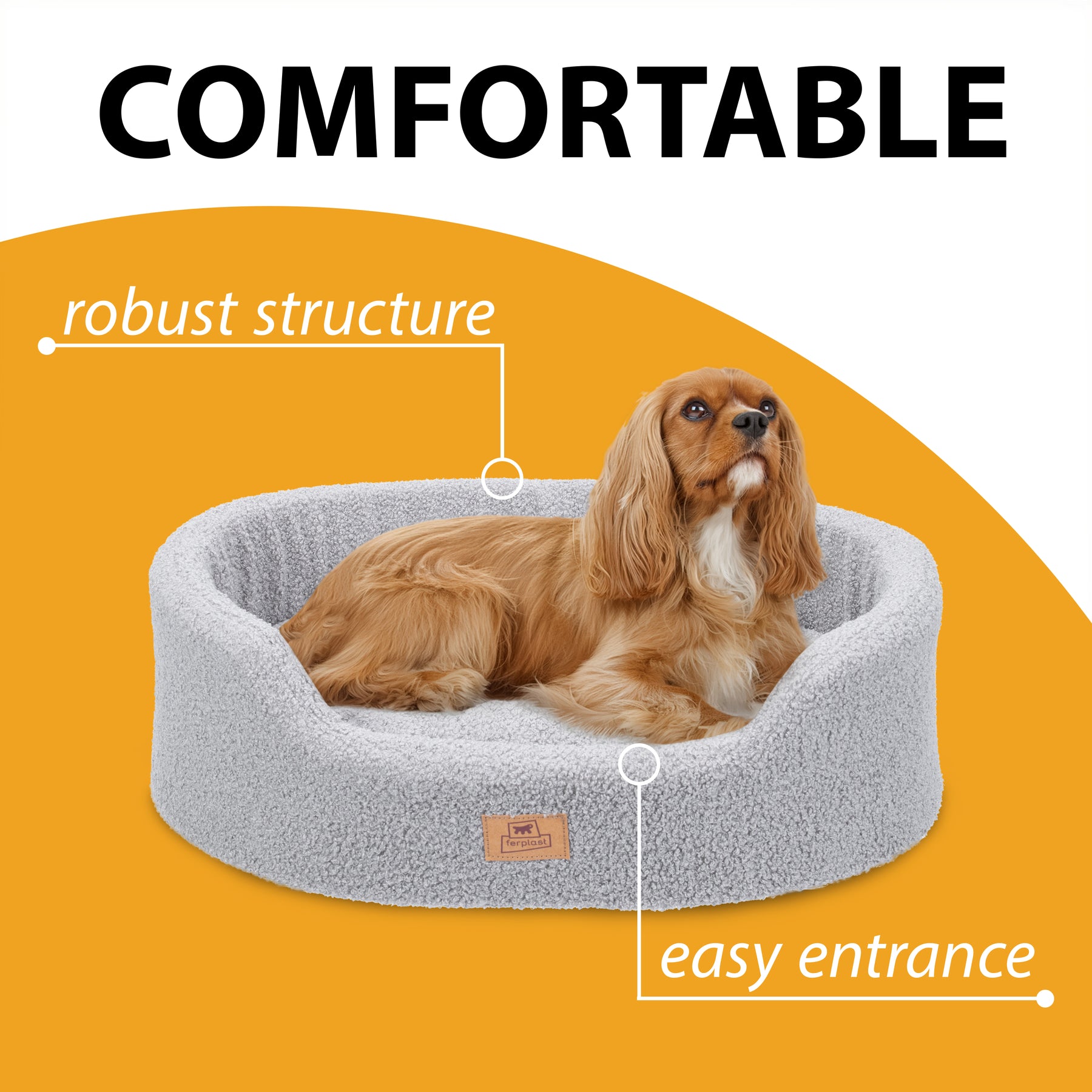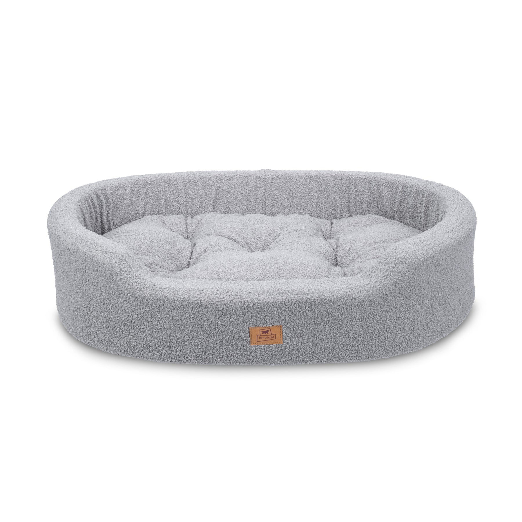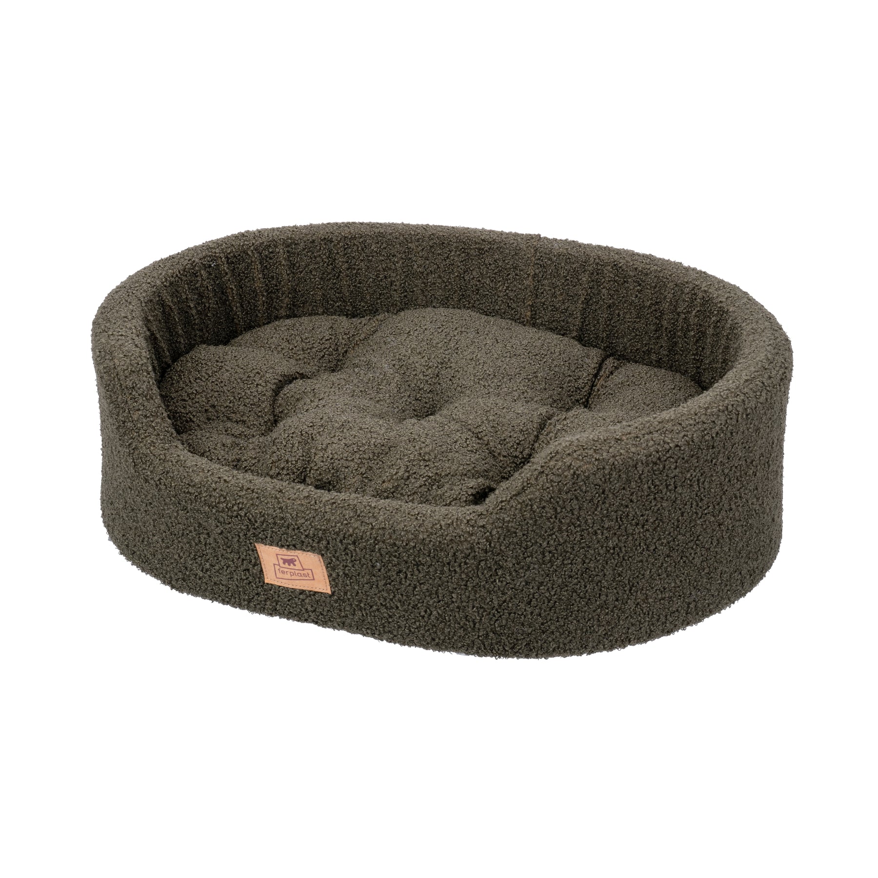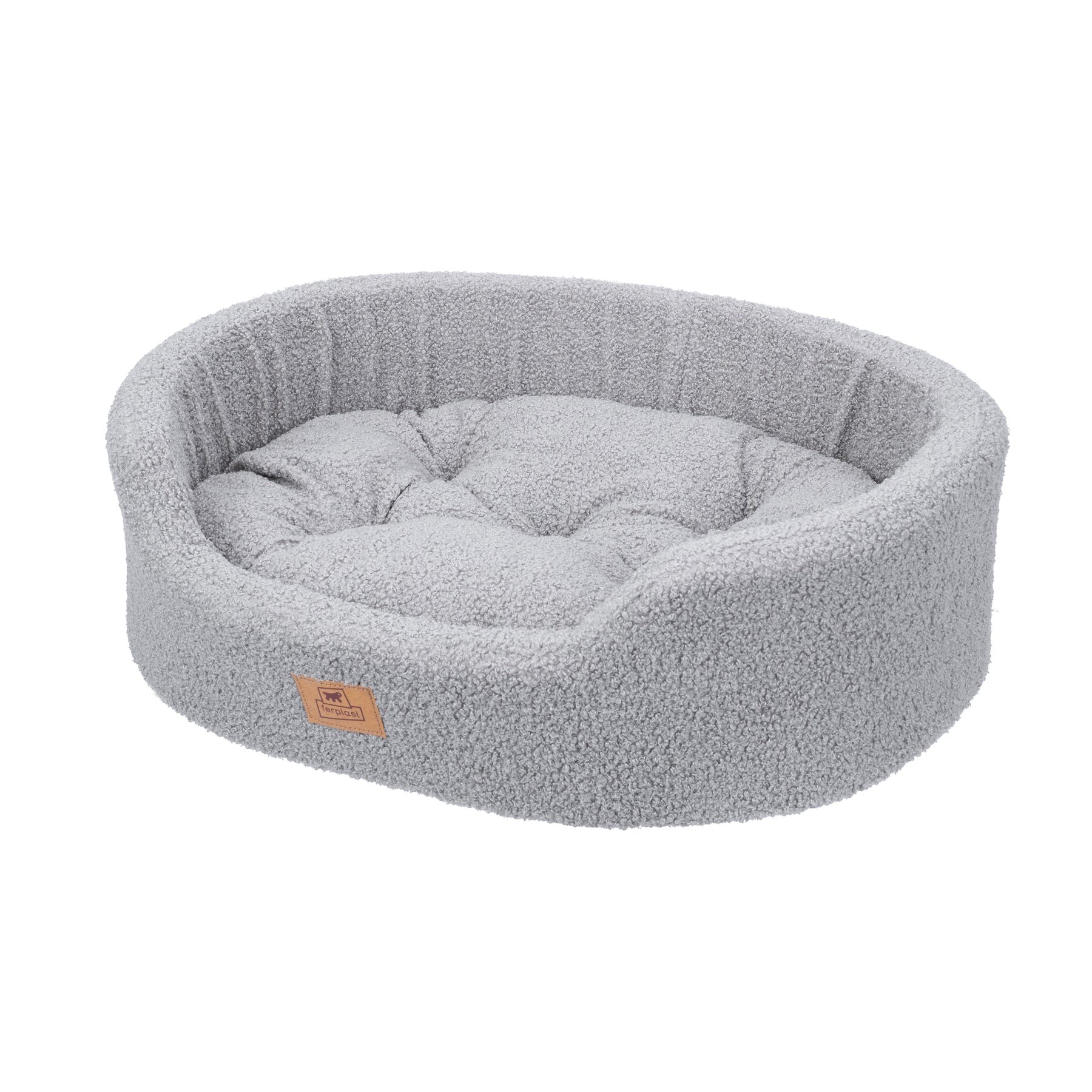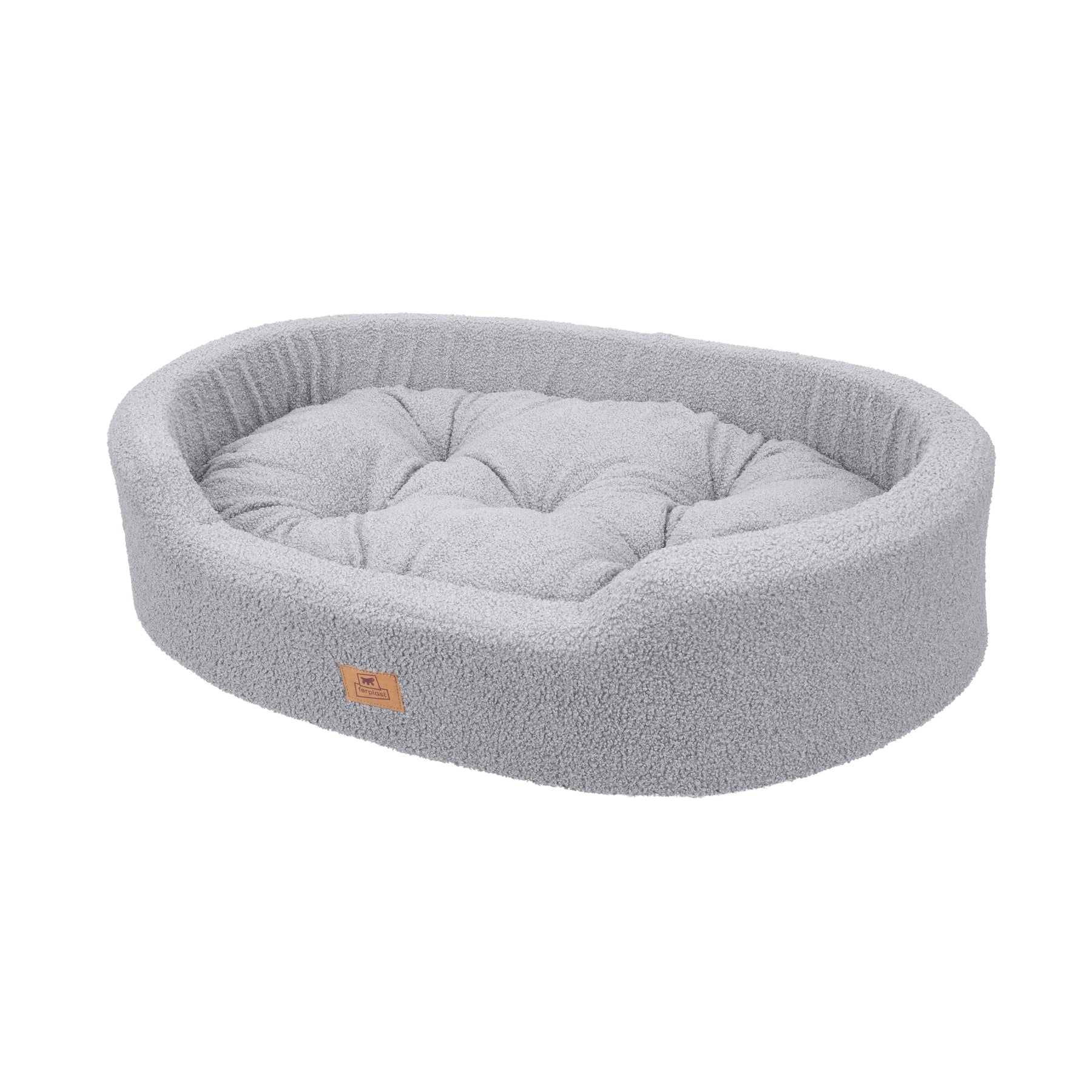 Das Dandy Bouclé Hundebett und Katzenbett vereint Stil und Komfort in einer eleganten und gemütlichen Liege. Es verfügt über hohe Seitenwände mit weicher Innenpolsterung und ein herausnehmbares Kissen, um Ihrem Vierbeiner Halt, Schutz und Wohlbefinden während der Ruhezeit zu bieten. An der Vorderseite erleichtert der abgesenkte Eingang den Zugang, auch für kleinere oder ältere Tiere.