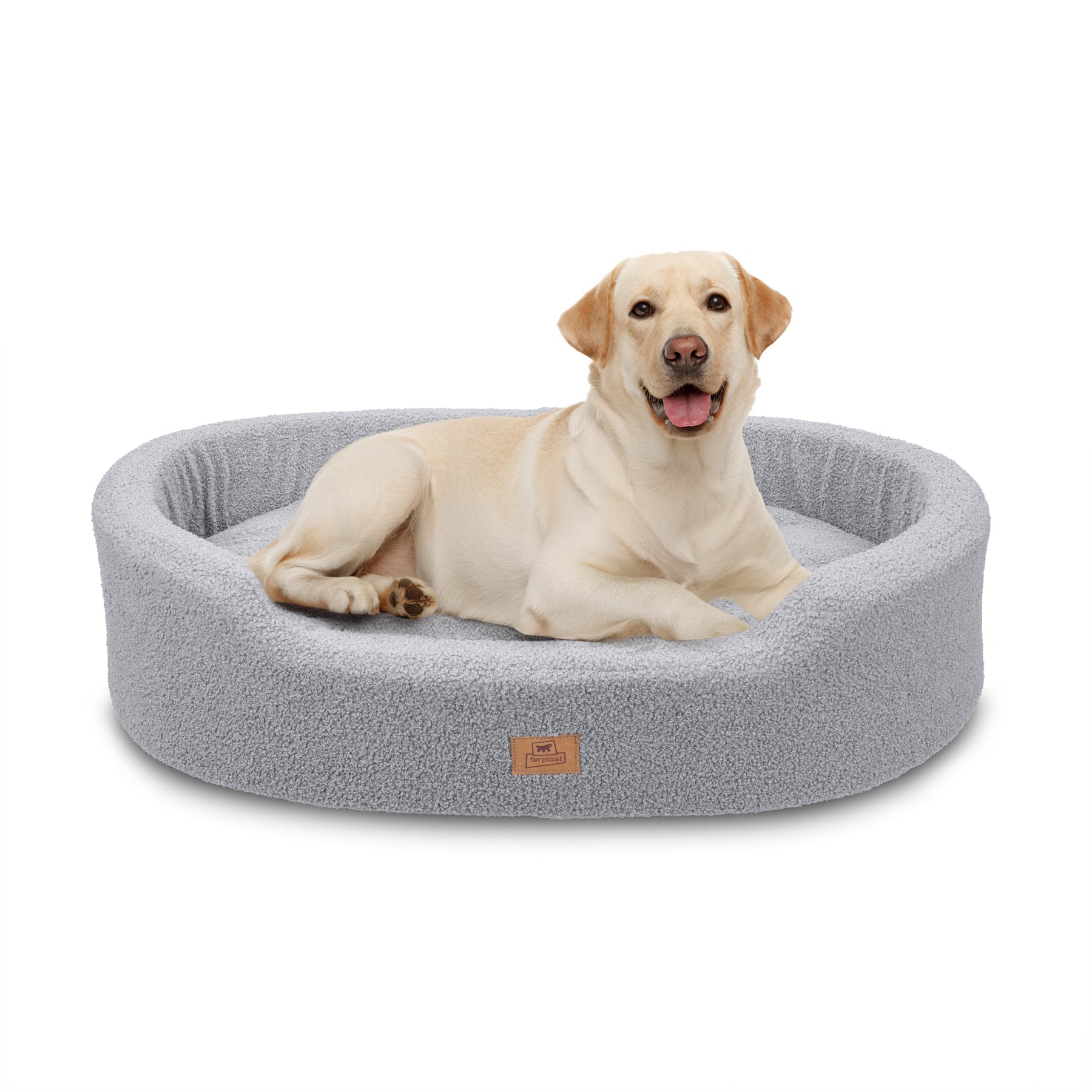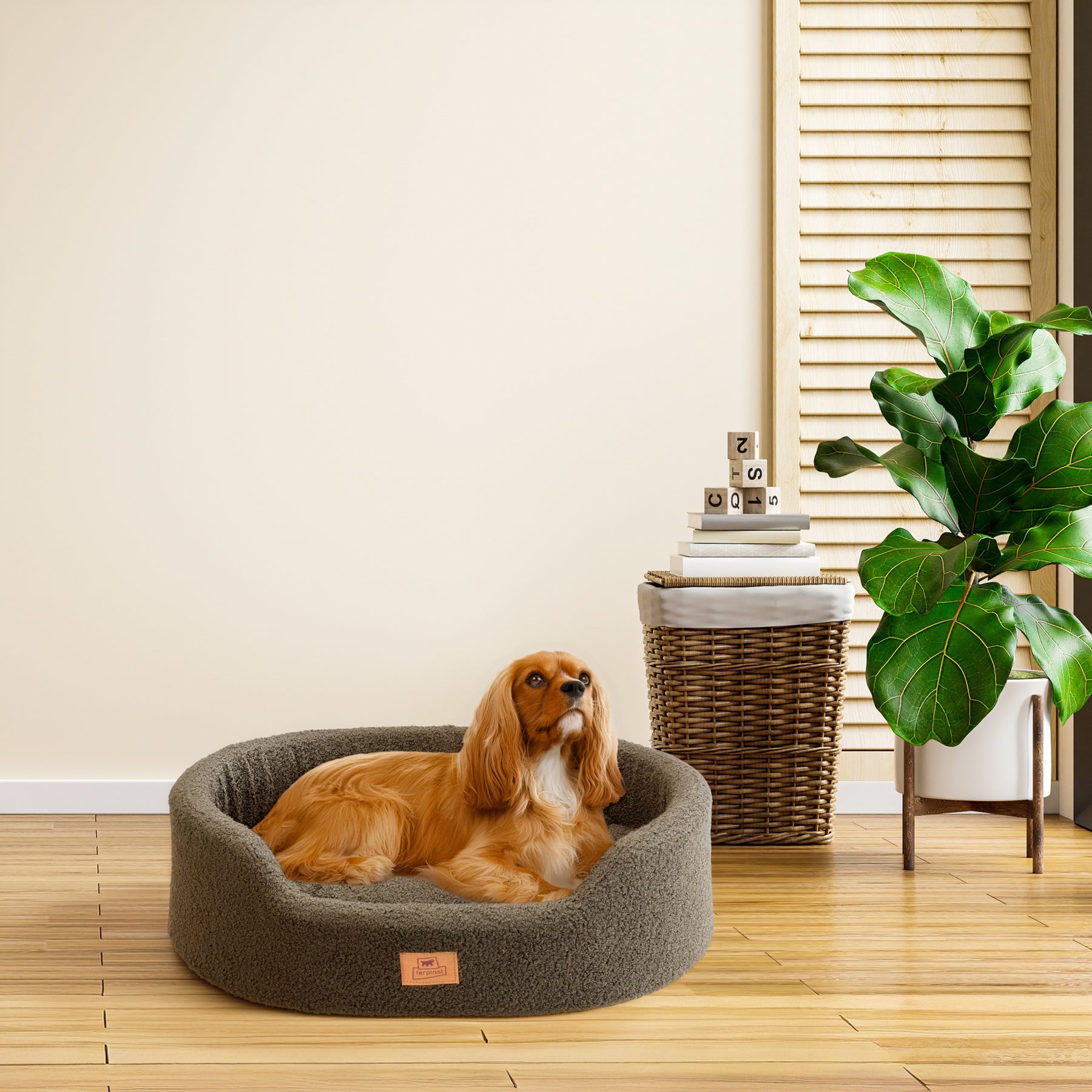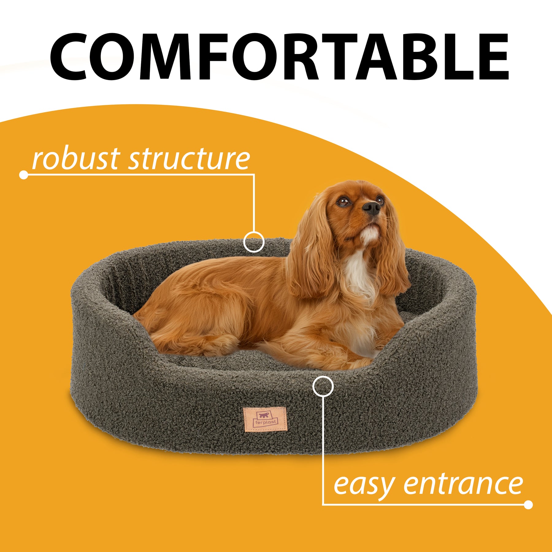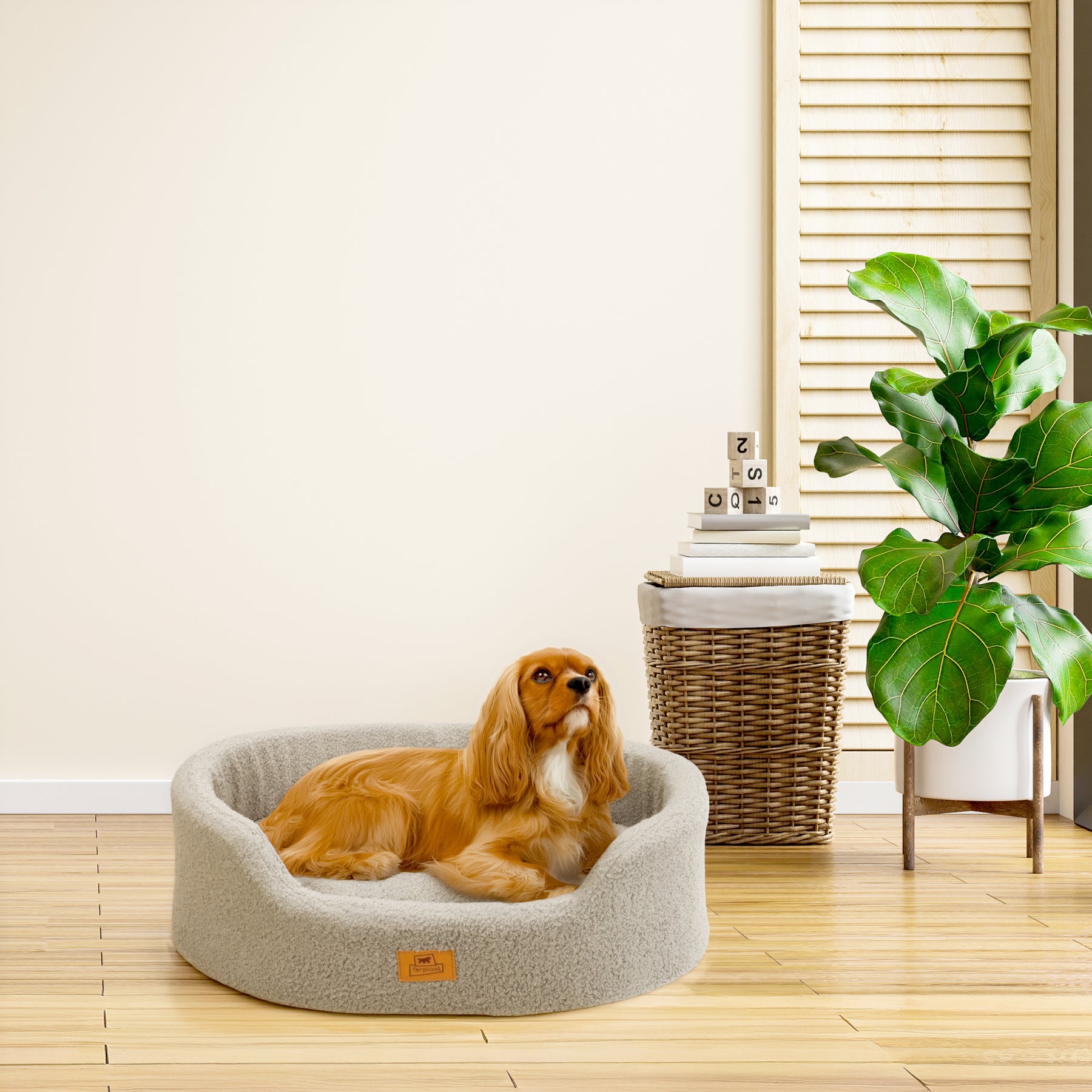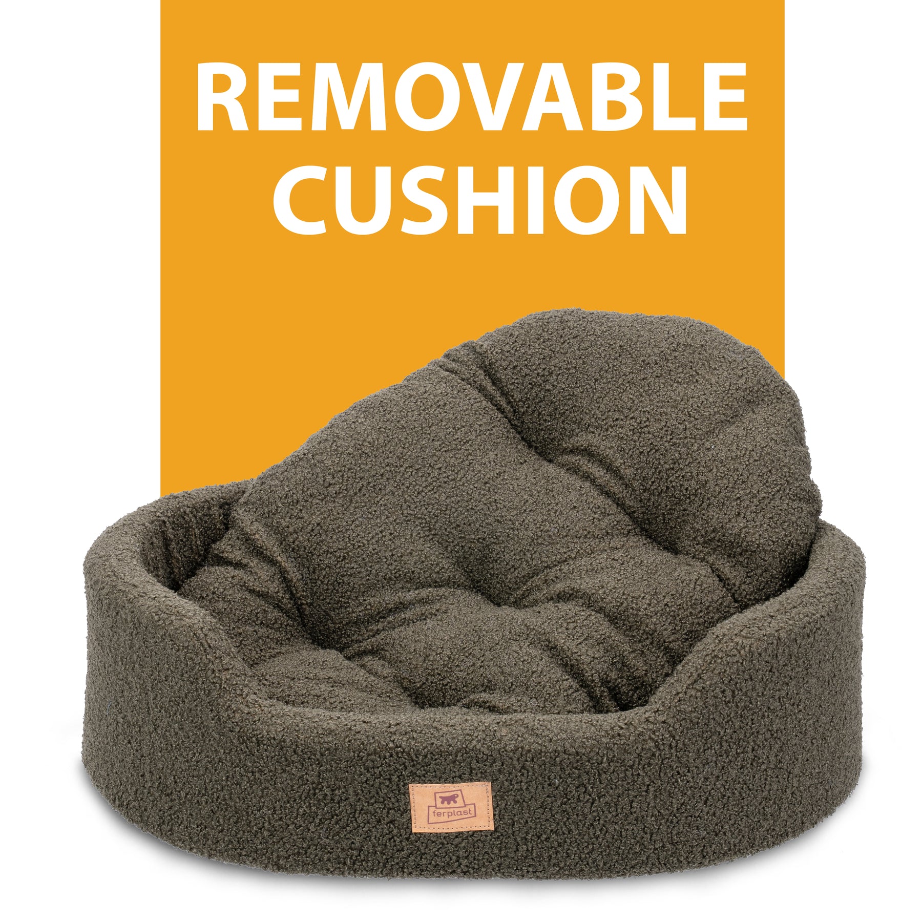 Das Dandy Bouclé Hundebett und Katzenbett vereint Stil und Komfort in einer eleganten und gemütlichen Liege. Es verfügt über hohe Seitenwände mit weicher Innenpolsterung und ein herausnehmbares Kissen, um Ihrem Vierbeiner Halt, Schutz und Wohlbefinden während der Ruhezeit zu bieten. An der Vorderseite erleichtert der abgesenkte Eingang den Zugang, auch für kleinere oder ältere Tiere.
