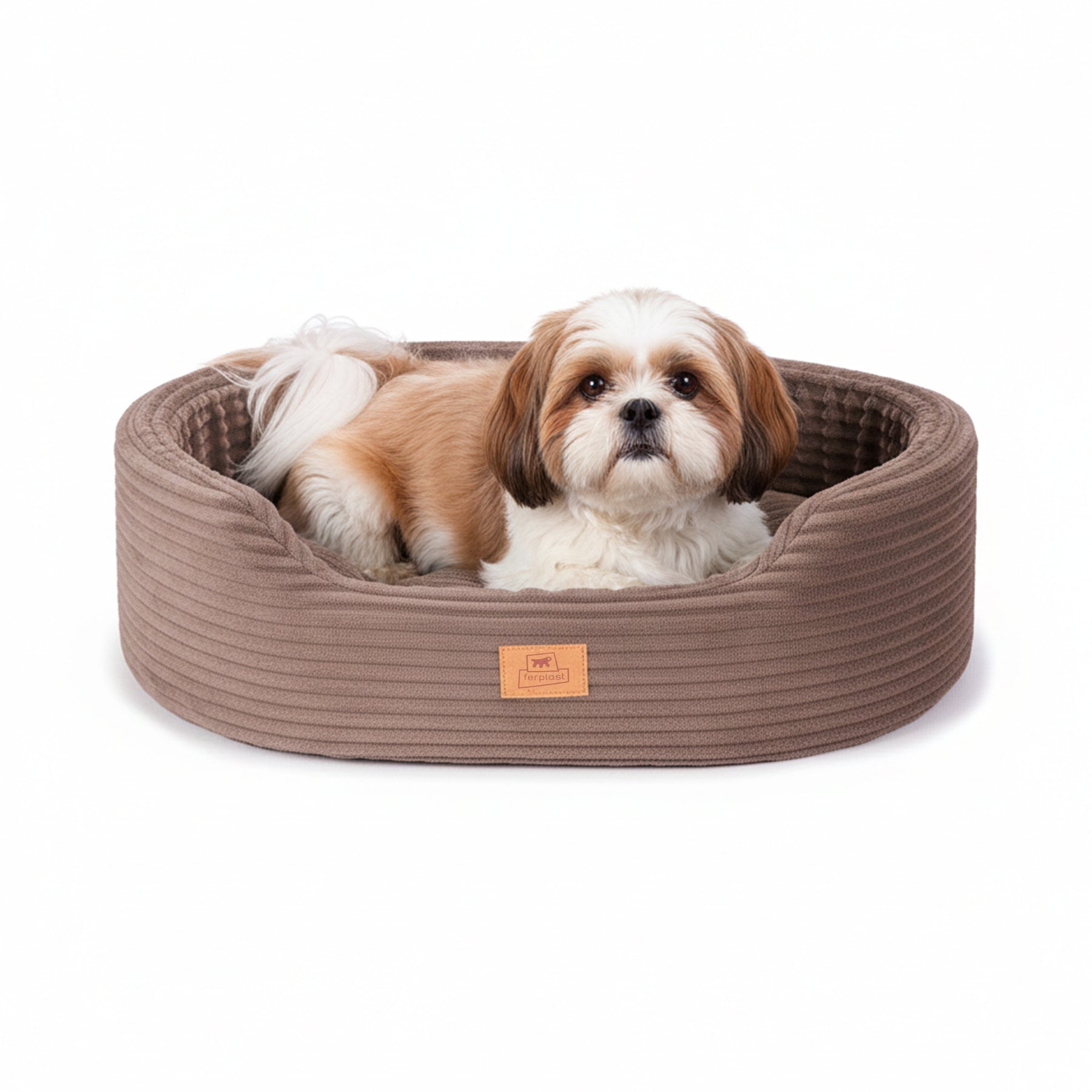 Dandy Corduroy ist ein Sofa-Hundebett für Hunde und Katzen, das einen komfortablen, geschützten und formschönen Ruheplatz bietet. Dank der gepolsterten Struktur und der erhöhten Ränder kann es auch als Indoor-Hundebett oder Katzenbett für den täglichen Gebrauch genutzt werden.