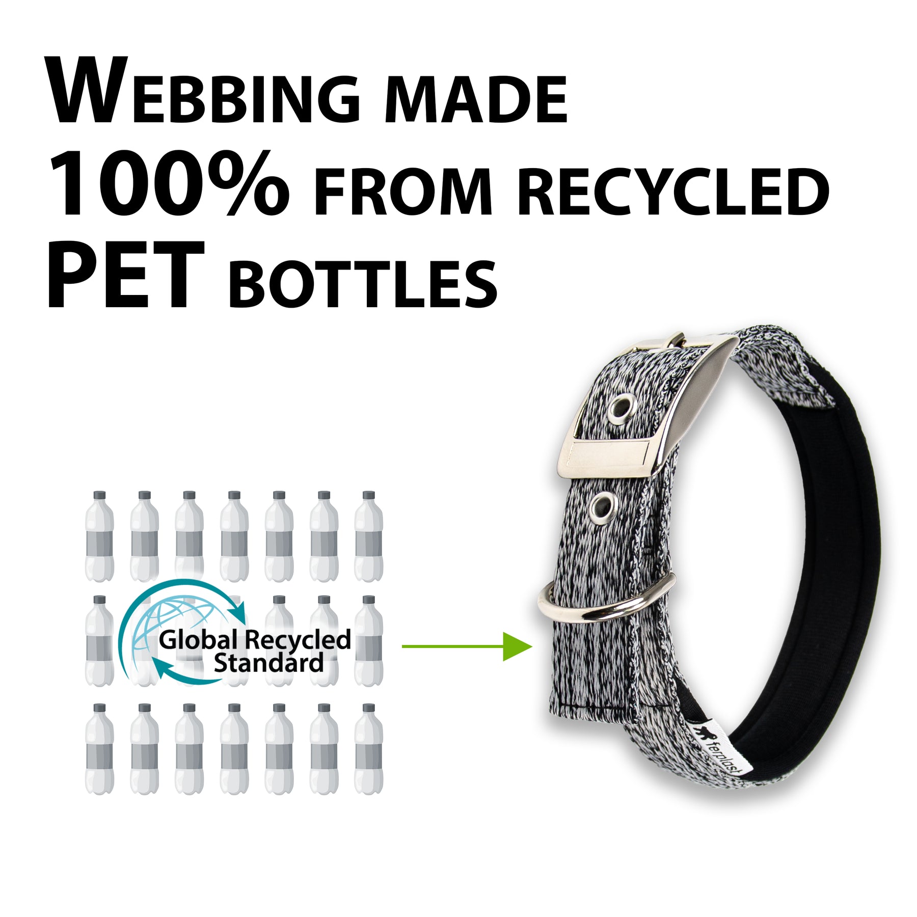 Die Greener Soft-Halsbänder von Ferplast sind die perfekte Kombination aus Nachhaltigkeit, Komfort und Stil, ideal für Hundebesitzer, die das Beste für ihre vierbeinigen Freunde und den Planeten wollen. Diese Hundehalsbänder verfügen über ein Gurtband aus 100 % recyceltem Polyester aus PET-Flaschen und sind nach dem Global Recycled Standard zertifiziert, der für umweltfreundliche Materialien und eine umweltbewusste Produktion steht.