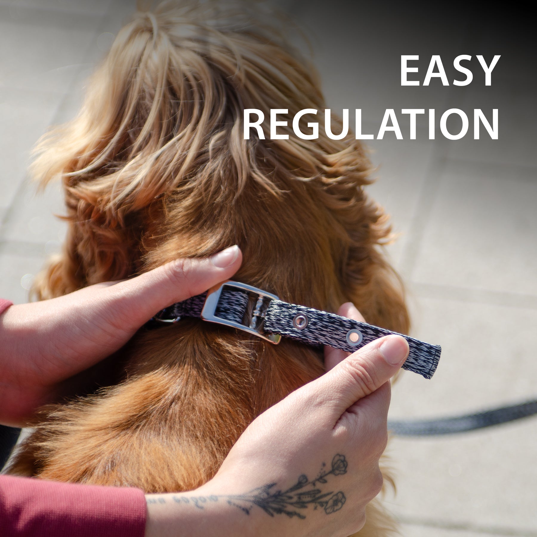 Die Lochverstellung sorgt für eine perfekte Passform und passt sich problemlos an Hunde aller Größen an. Die Halsbänder sind außerdem mit einer Metallschnalle ausgestattet, die einen Hauch von raffinierter Eleganz verleiht.