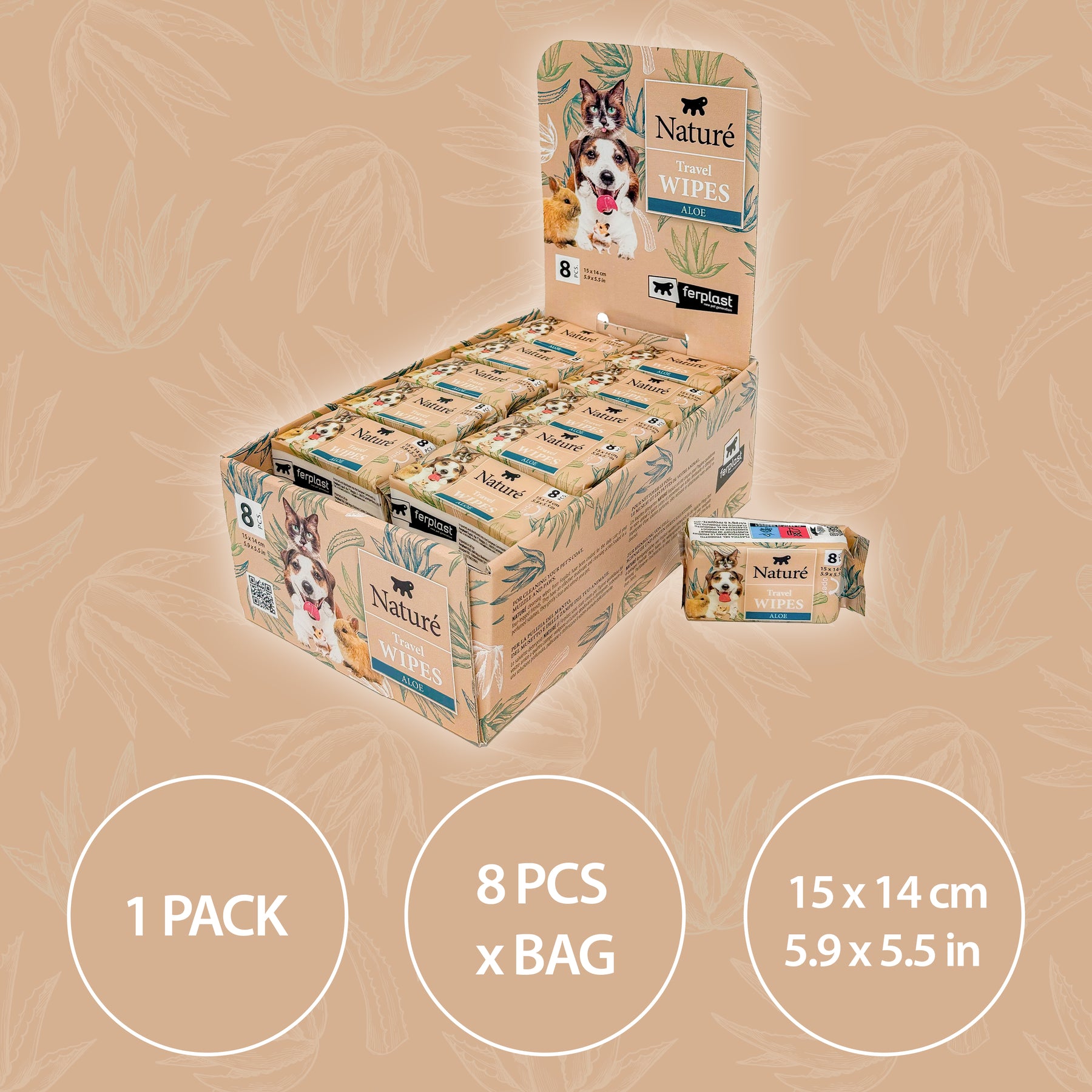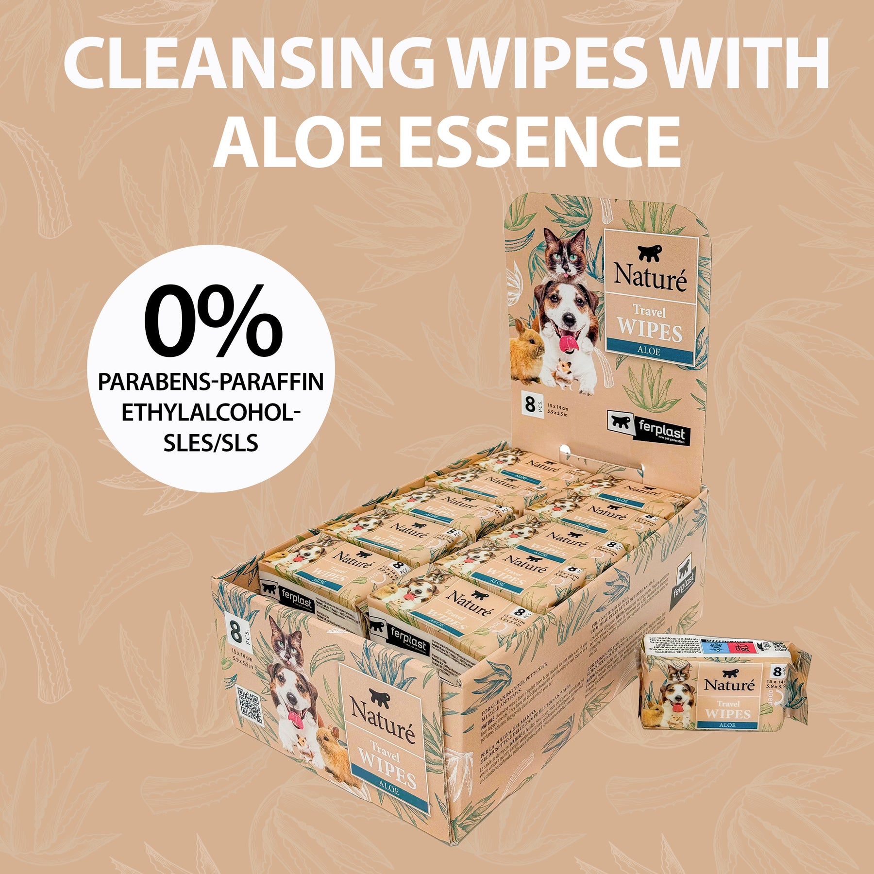Die feuchten Reinigungstücher Naturè Travel Wipes sind die ideale Lösung, um eine schnelle, sichere und schonende Reinigung von Hunden und Katzen auch unterwegs zu gewährleisten. Sie wurden entwickelt, um Sie in jeder Situation zu begleiten, und sind perfekt für Reisen, Spaziergänge oder kleine Missgeschicke geeignet, um Ihr Haustier stets sauber und gepflegt zu halten.