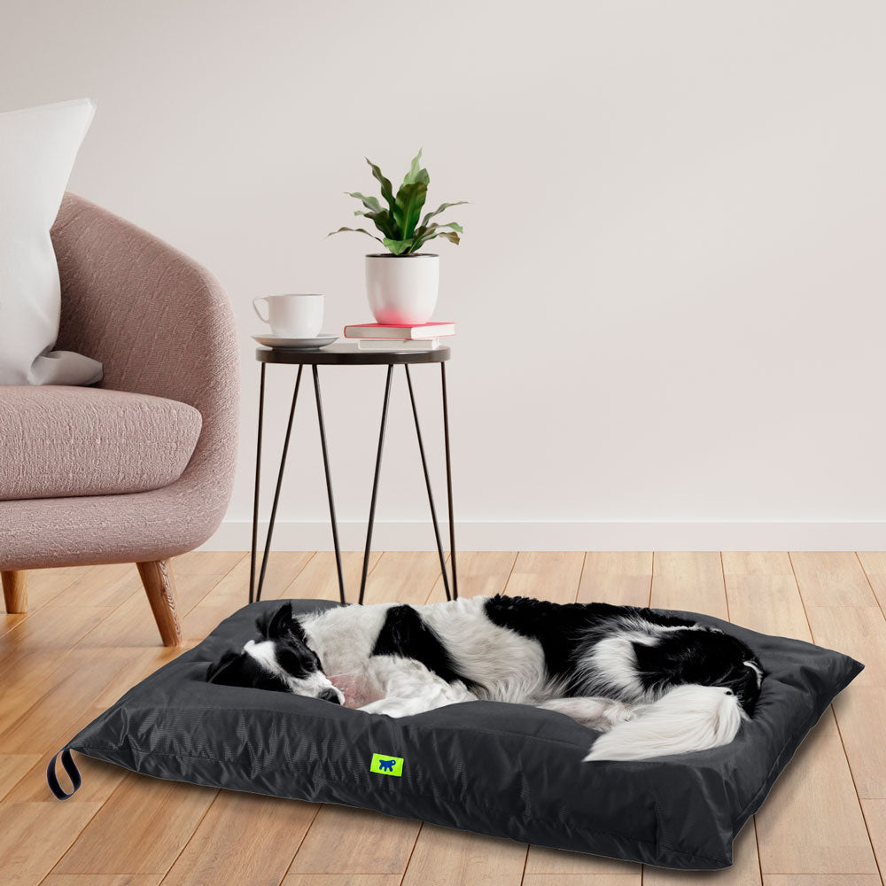 Das Kissen ist mit einer weichen Polsterung ausgestattet, die Ihrem Vierbeiner zu jeder Tageszeit absolute Entspannung garantiert. Eine Schlaufe in der Ecke des Kissens ermöglicht es Ihnen, es mühelos überall hin zu transportieren. Olympic ist bei niedriger Temperatur (30 ° C) leicht in der Maschine zu waschen und dank eines praktischen Reißverschlusses ist es möglich, die Polsterung zum Waschen aus dem Bezug zu ziehen. Für die tägliche Hygiene und kleinere Flecken kann das Kissen schnell mit einem feuchten Schwamm gereinigt werden.