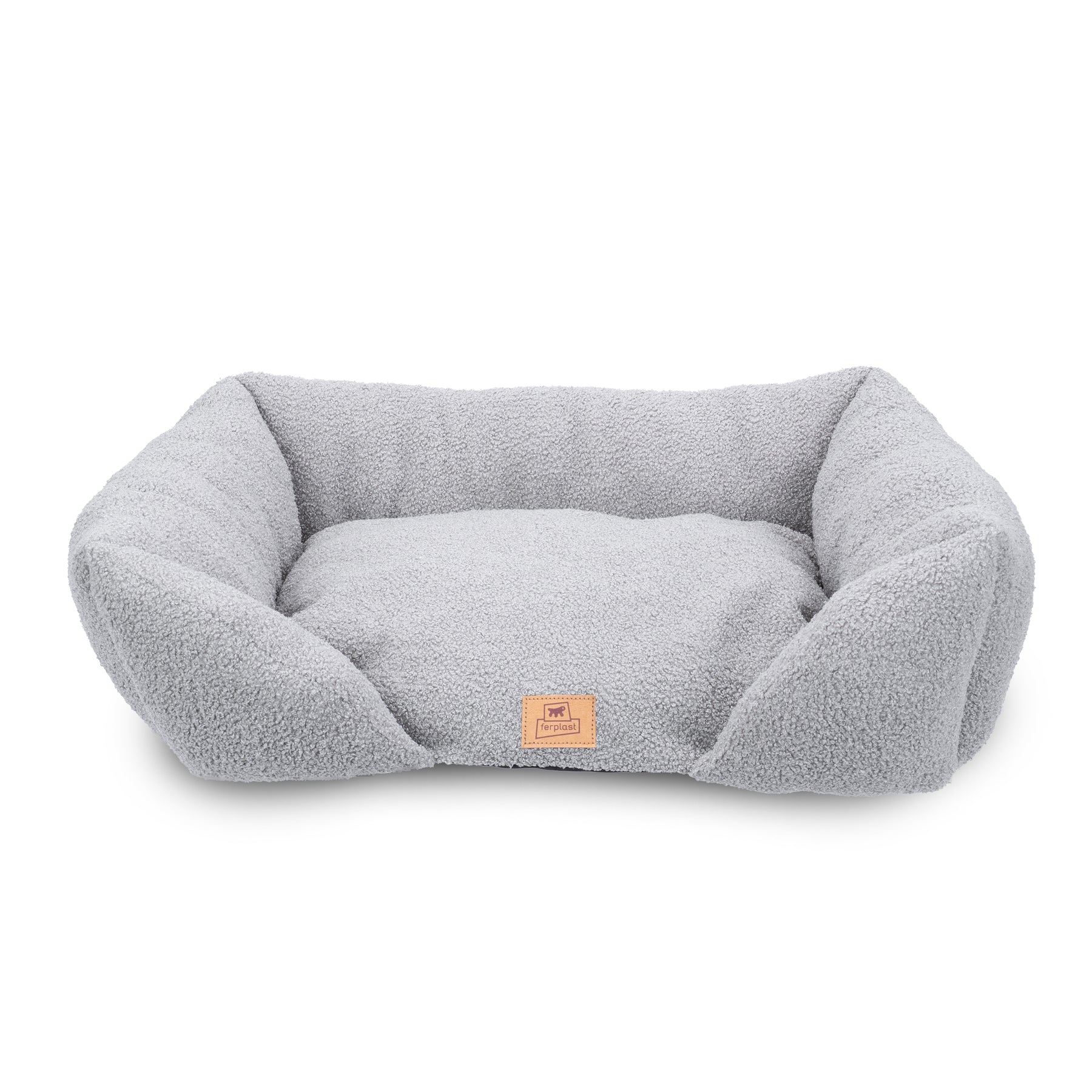 Seine rechteckige Form mit abgesenktem Eingang erleichtert den Ein- und Ausstieg, während die erhöhten Ränder Halt und ein Gefühl von Geborgenheit bieten. Dadurch wird das Sofa zu einem weichen, geschützten Rückzugsort. Die Polsterung sorgt für Bequemlichkeit und Entspannung und hüllt Ihren Vierbeiner in eine sanfte Umarmung.