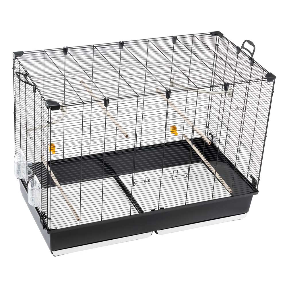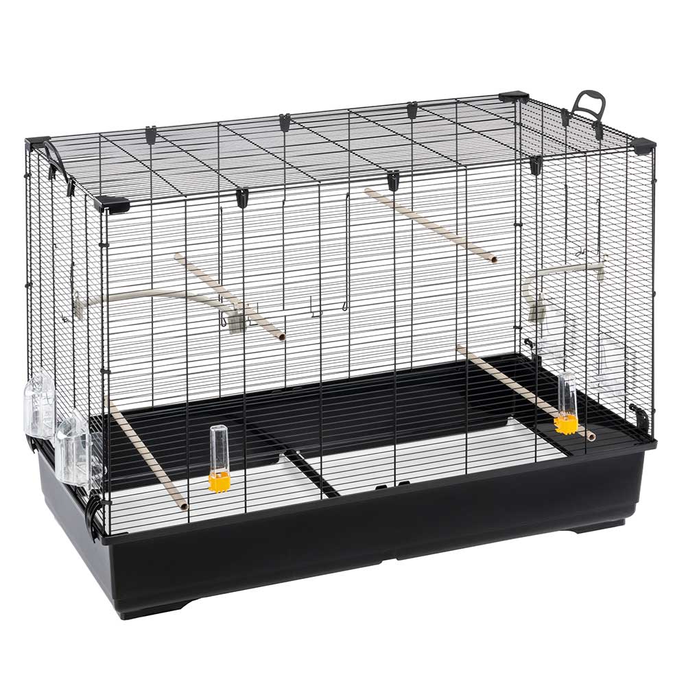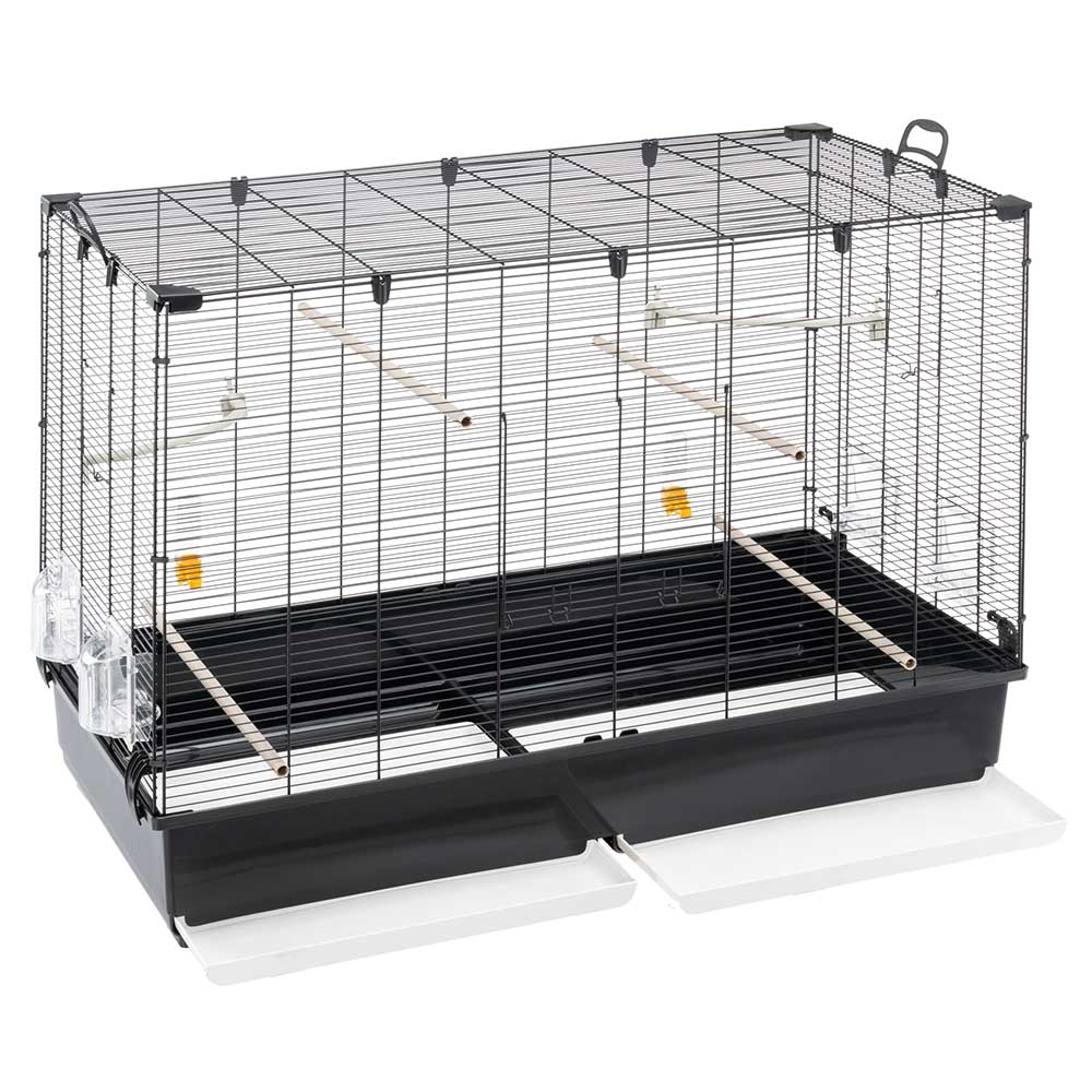 Die geräumigen und komfortablen Vogelkäfige Piano 7 und Piano 8 sind ideal für die Unterbringung von Kanarienvögeln, Sittichen und anderen Vögeln. Sie zeichnen sich durch ein klares und essentielles Design aus und haben eine lackierte Metallgitterstruktur mit einem Dach, das mit Eckstützen und Befestigungsclips ausgestattet ist, um maximale Stabilität und Sicherheit zu gewährleisten. Komfortable Griffe auf dem Dach ermöglichen eine einfache Bewegung. Die Käfige sind außerdem mit einem großen Kunststoffboden mit herausnehmbaren Schubladen für eine einfache und schnelle Reinigung ausgestattet. Mitgeliefertes Zubehör: traditionelle Sitzstangen, Eckstangen und Trinkflaschen, zusätzlich zu den speziellen abnehmbaren Brava 2-Futternäpfen. Diese praktischen Futternäpfe sind um 180° drehbar und können daher von außen befüllt werden, ohne dass der Käfig geöffnet werden muss, wodurch die Gefahr des Entkommens Ihres kleinen Vogels vermieden wird. Sie bestehen aus stabilem, durchsichtigem Kunststoff und haben nützliche Kanten, die verhindern, dass Lebensmittel aus dem Käfig fallen.