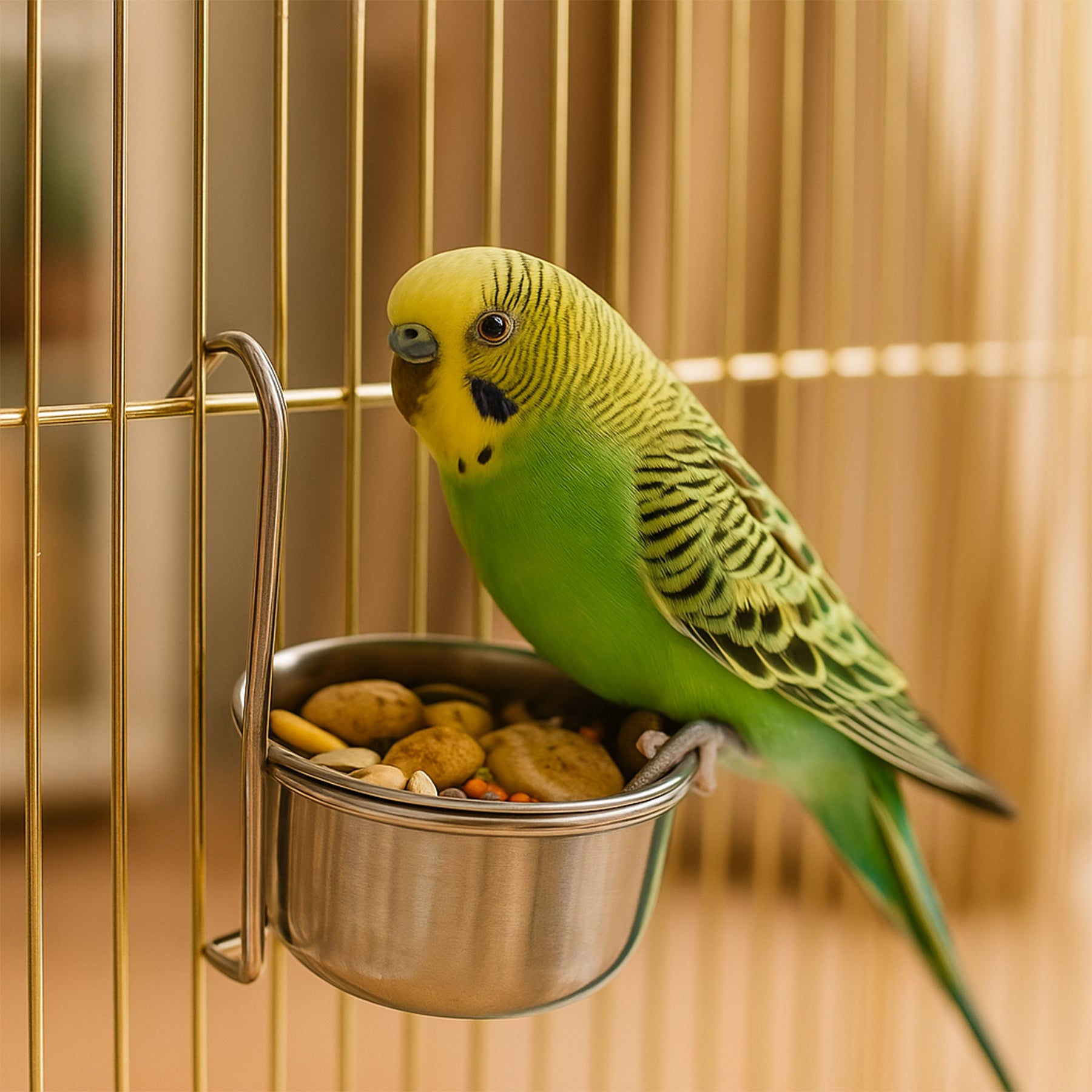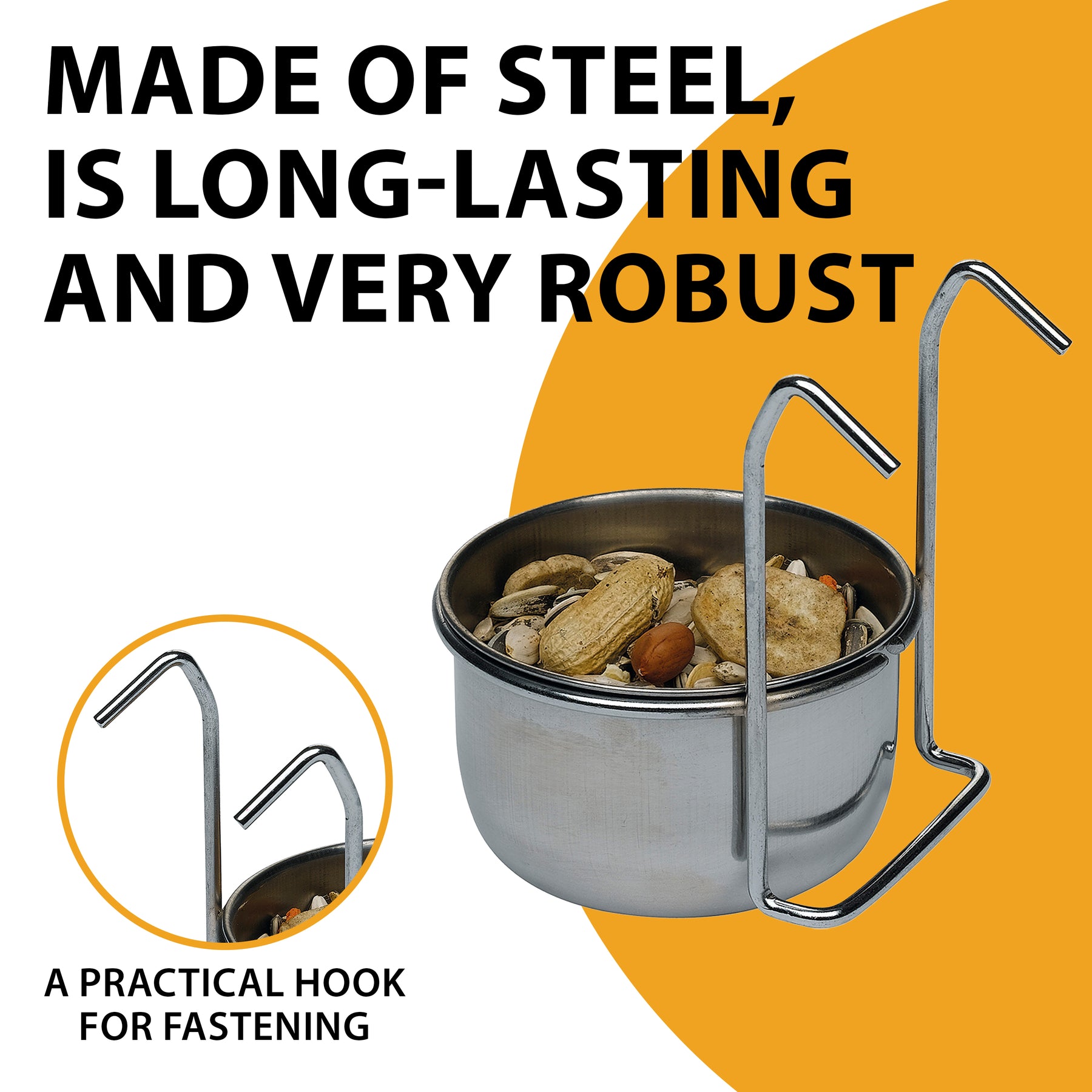 Die Sirio Papageien-Futterbehälter sind in drei größen lieferbar, ausgestattet mit einem Befestigungshaken. Sie bestehen aus Edelstahl, wodurch sie leicht zu reinigen, langlebig und hygienisch sind. Durch ihre runde Form und Größe sind sie perfekt für Körner und Futtermischungen.