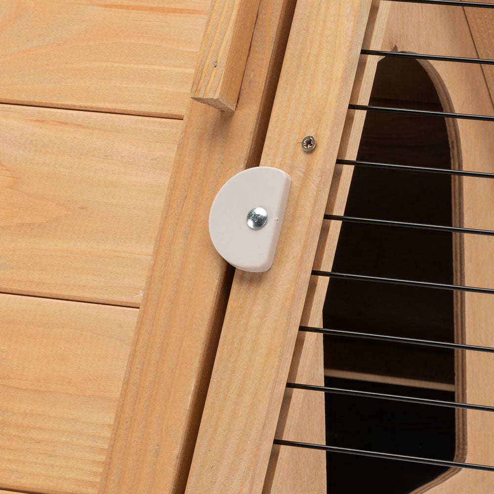 - Kaninchenstall aus Holz mit großer, von außen zu öffnender Fronttür und Sicherheitsschloss