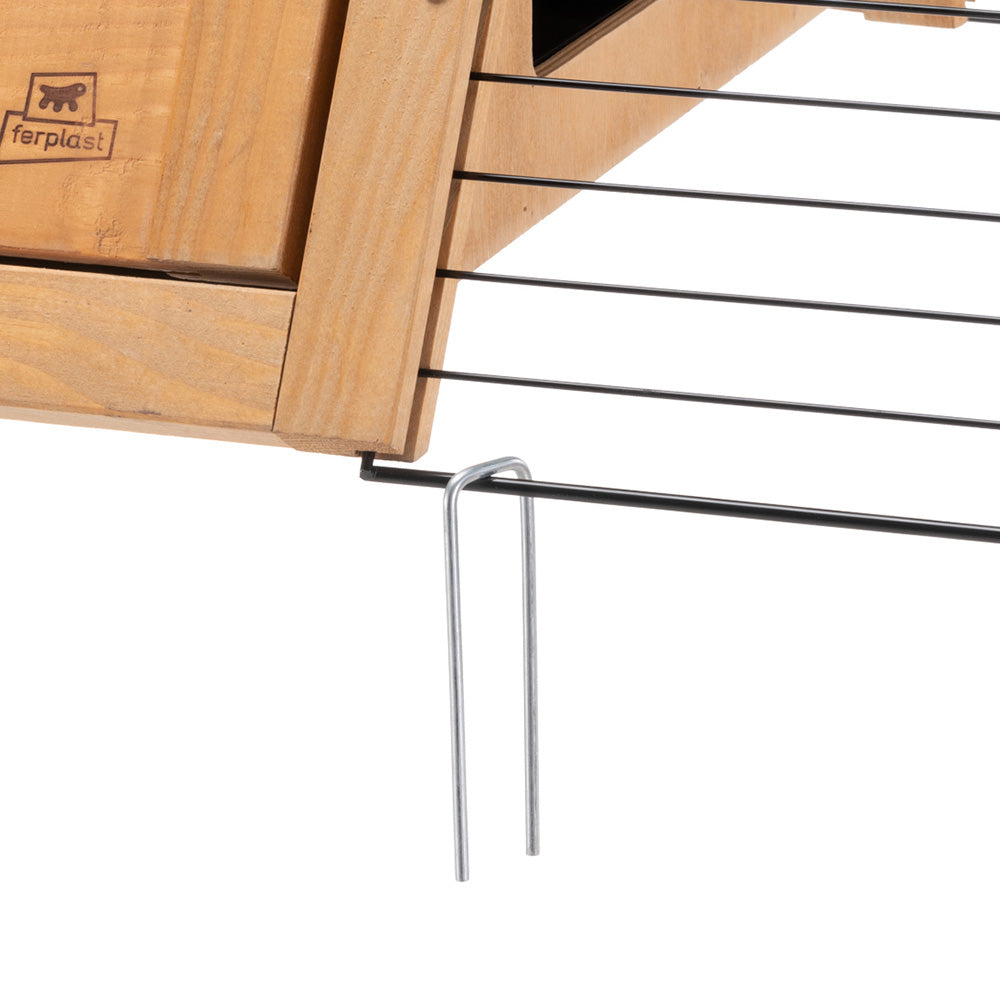 Ausgestattet mit Heringen zur Befestigung am Boden, ist Kaninchenkäfig Twingloo so gebaut, dass es den Elementen im Freien standhält und Stabilität und Haltbarkeit garantiert.