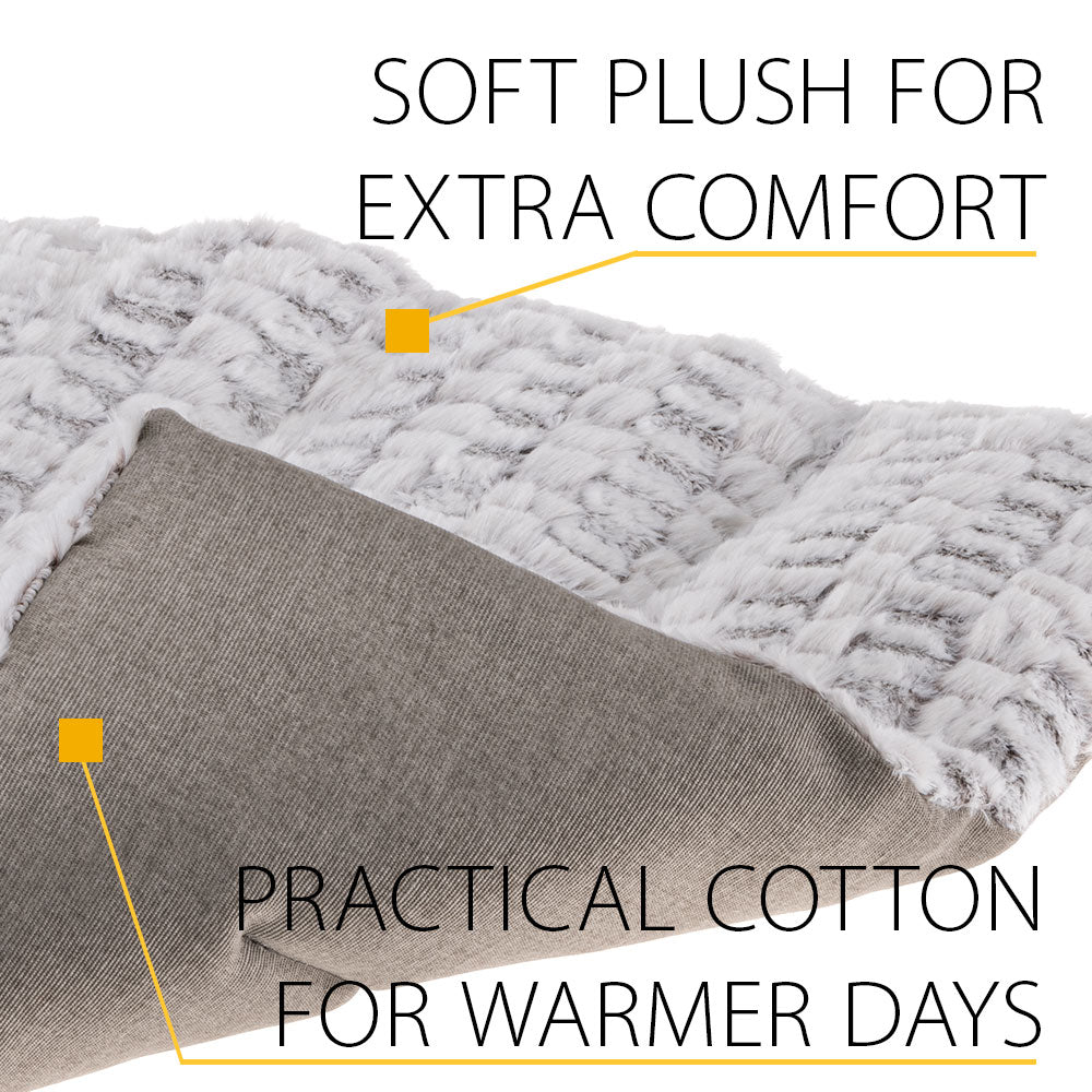 Vanilla ist ein weiches und warmes Kissen für Hunde und Katzen. Das Kissen ist doppelseitig und hat eine weiche, umweltfreundliche Fellseite, ideal für die Wintersaison, und eine Baumwollseite für die wärmeren Jahreszeiten. Die Matte ist sehr vielseitig: Sie kann allein als Bett für Hunde und Katzen oder zum Schutz des Sofas oder der Autositze verwendet werden. Auch für Outdoor-Hundehütten oder Superior-Hundeboxen geeignet. Die dünne Polsterschicht isoliert Ihren Freund effektiv und sorgt für optimalen Komfort.