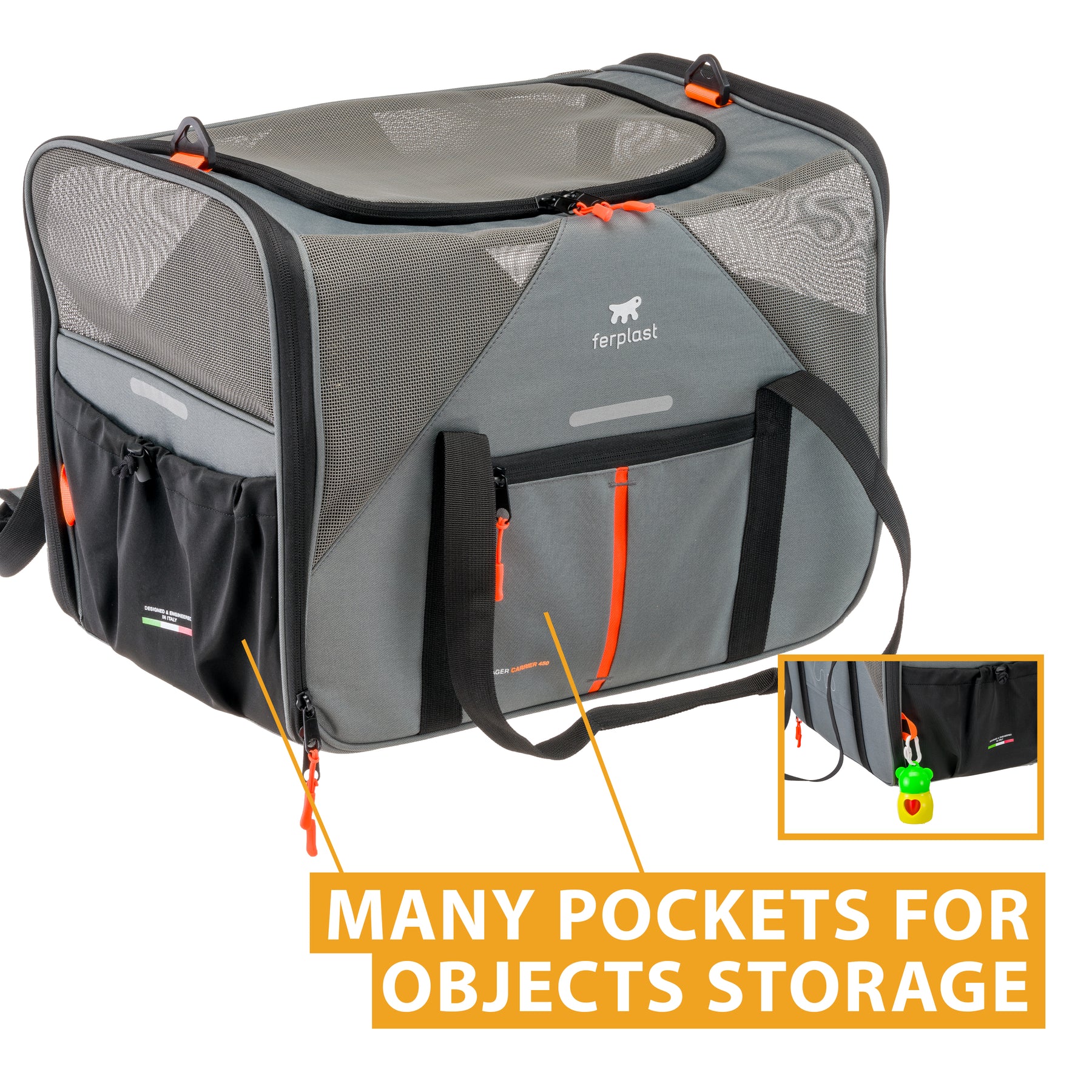 - Geräumige Taschen für Snacks, Reisedokumente oder nützliches Zubehör für Ihren Hund oder Ihre Katze